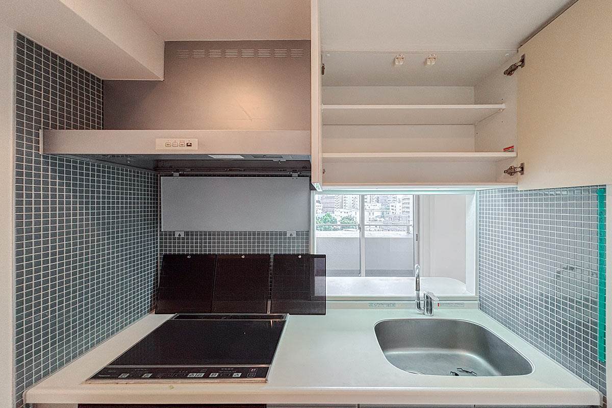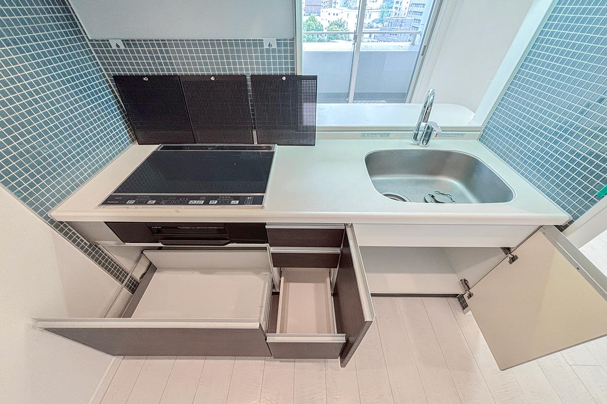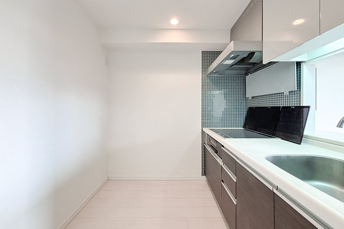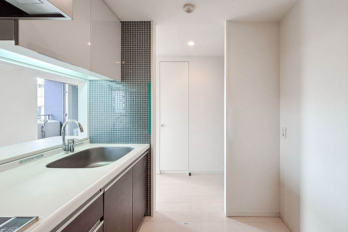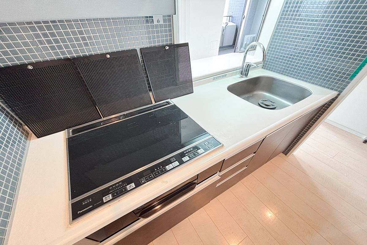 ブルーのタイルもさりげなく気分が上がるポイントです。