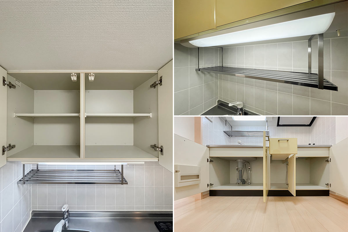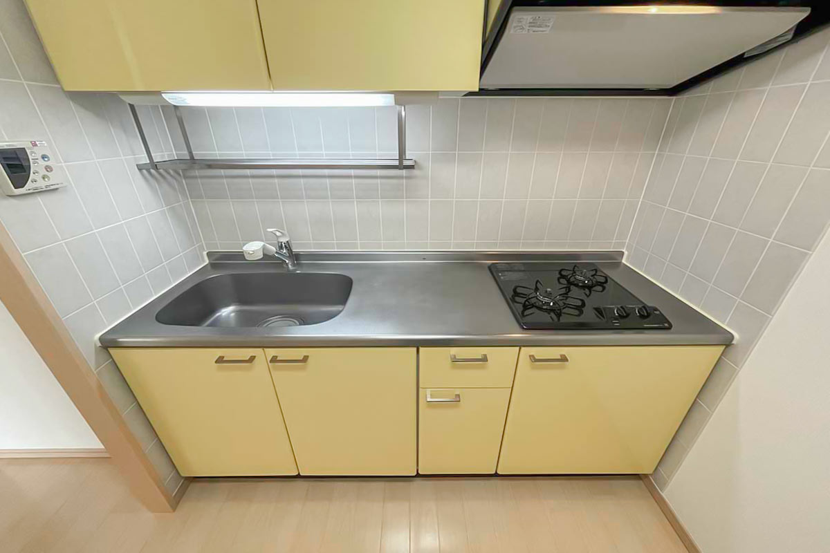 グリルは付いていませんが、斜め2口コンロ・収納はたっぷりです。