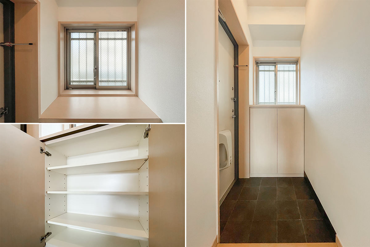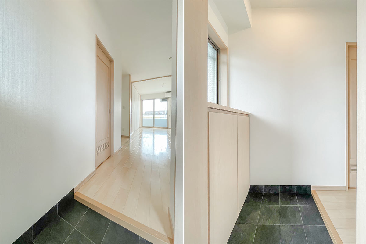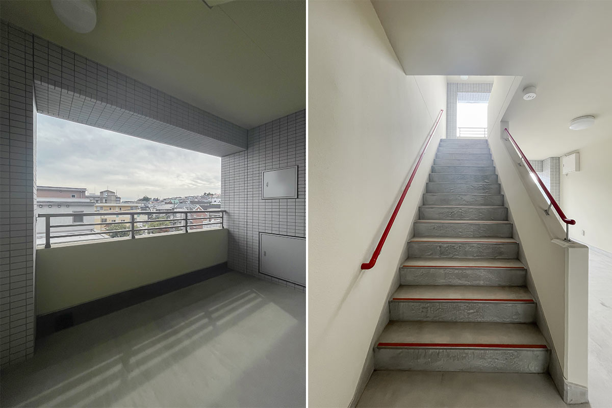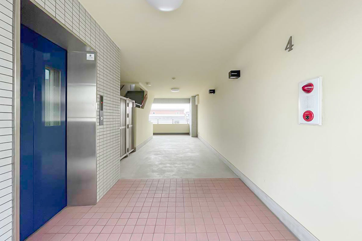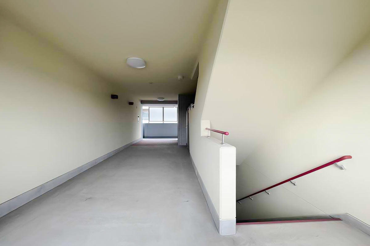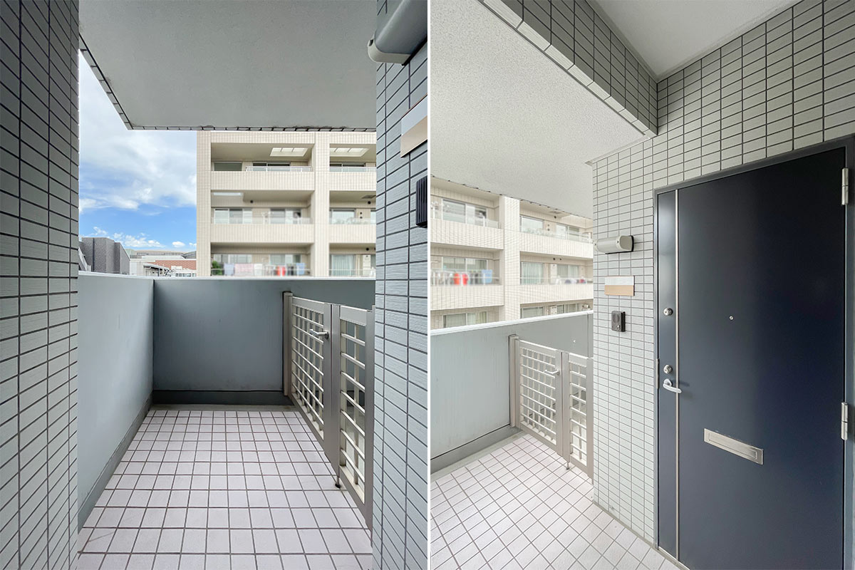 部屋ごとに玄関前の空間が用意されており、4階は植物や小さなオブジェが置けそうな広さがありました。