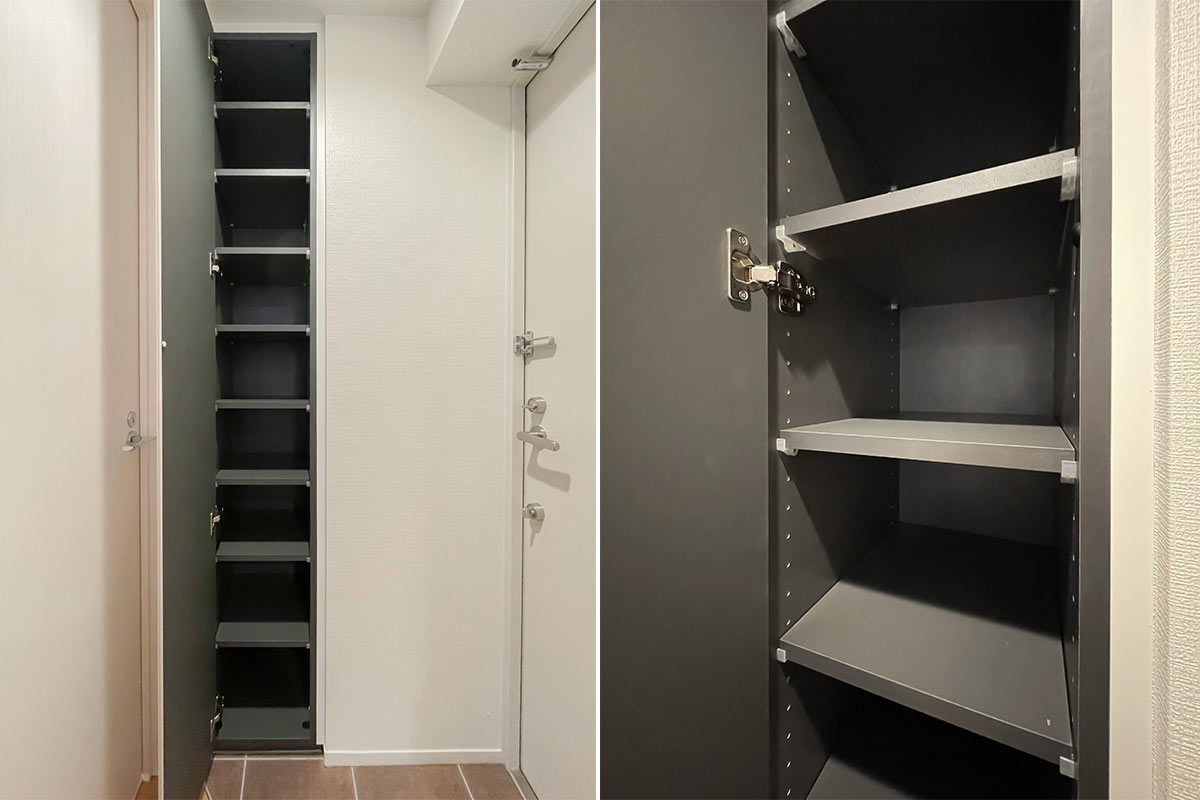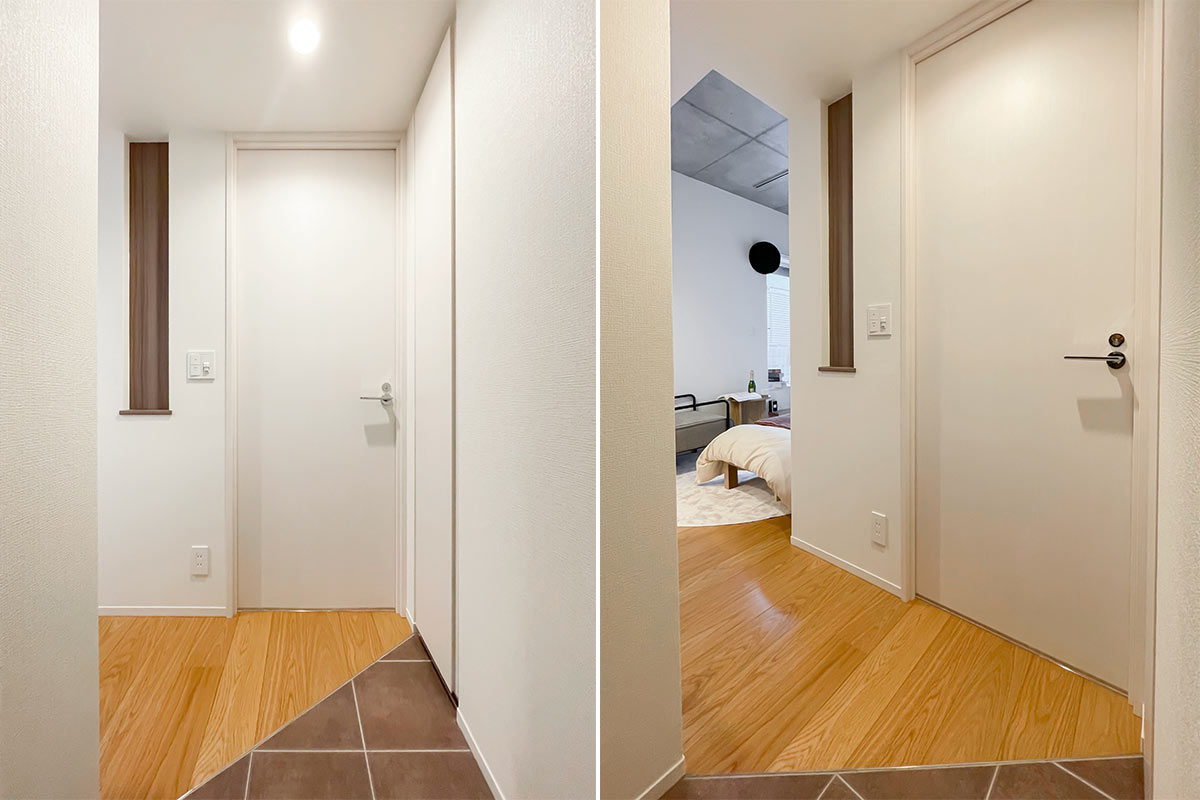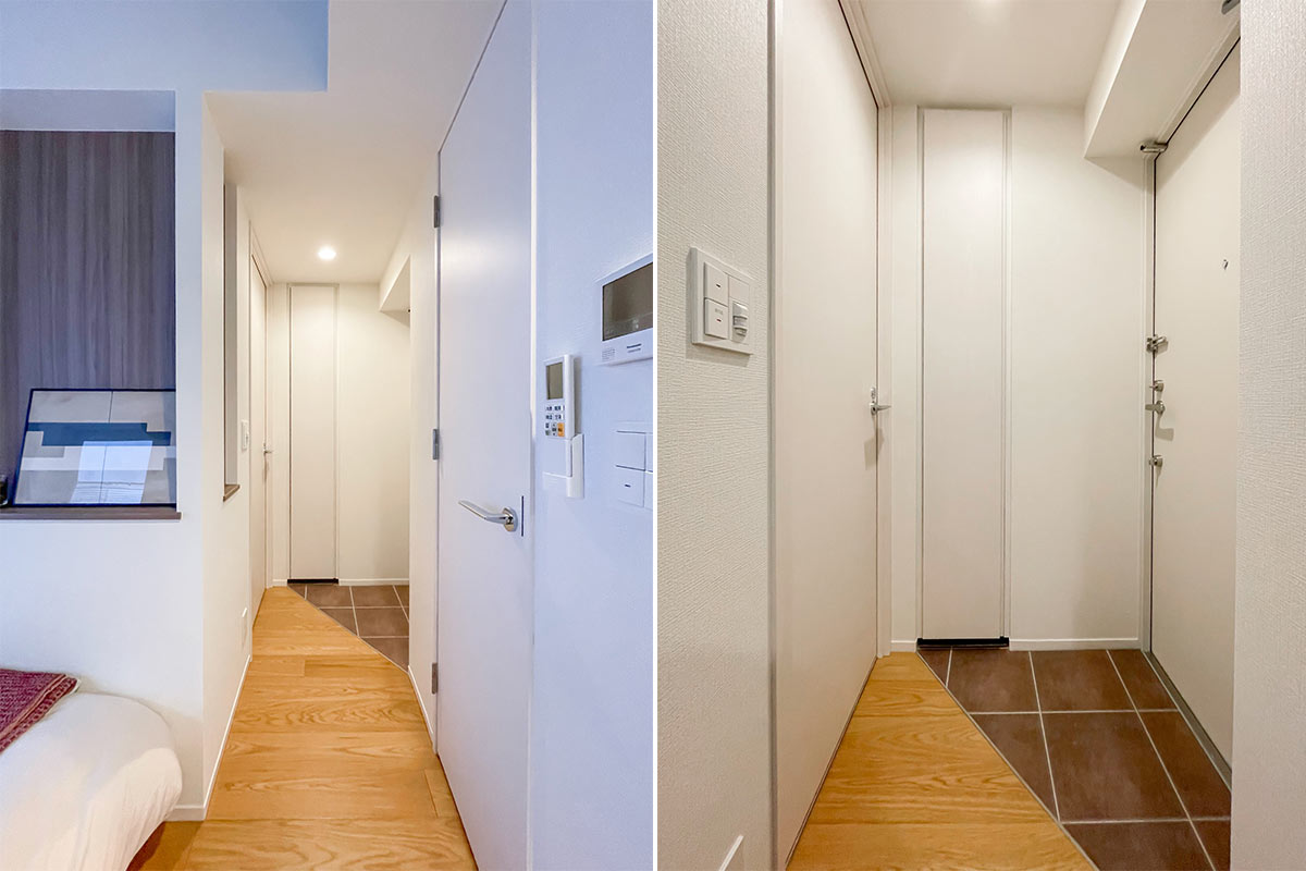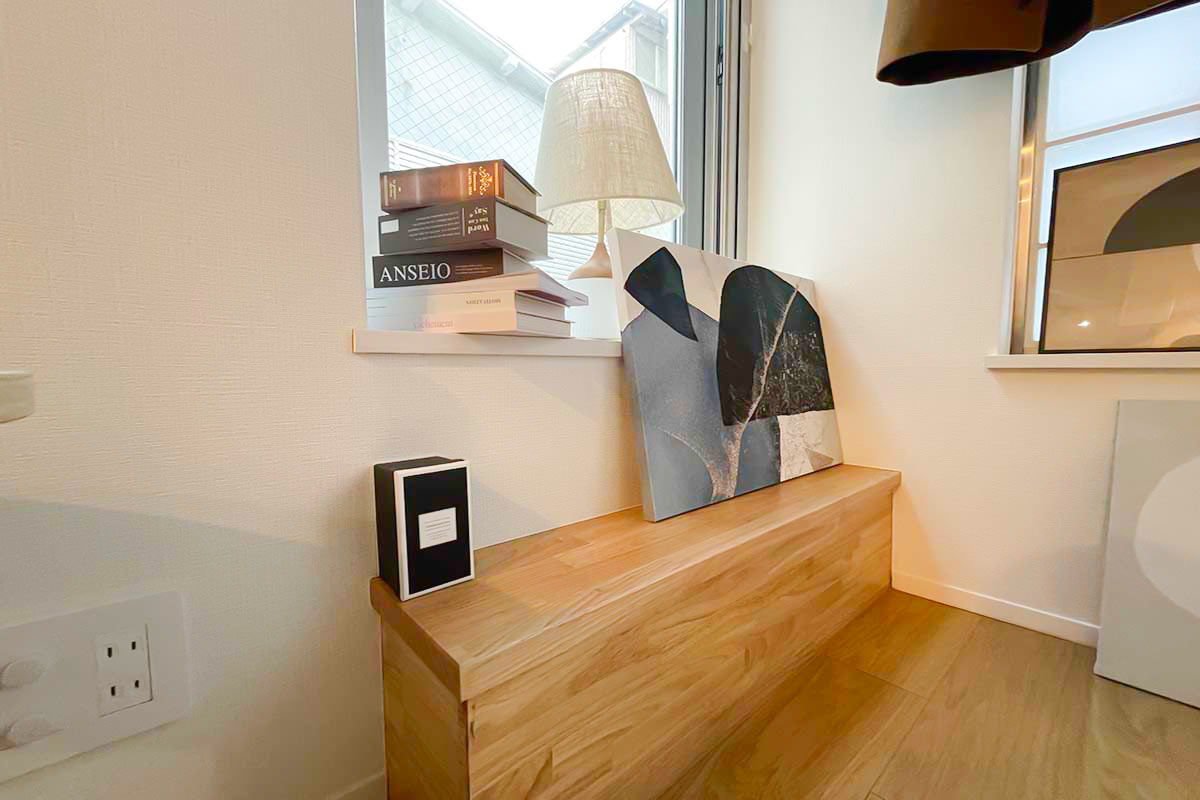 玄関には靴箱のほかに、ニッチがあり、鍵を置いたり、アートを飾ったりすることができます。
