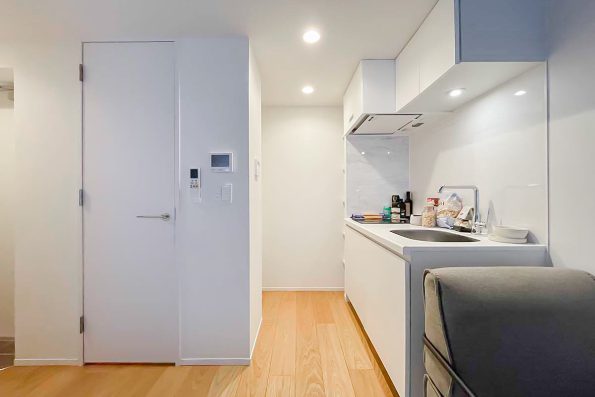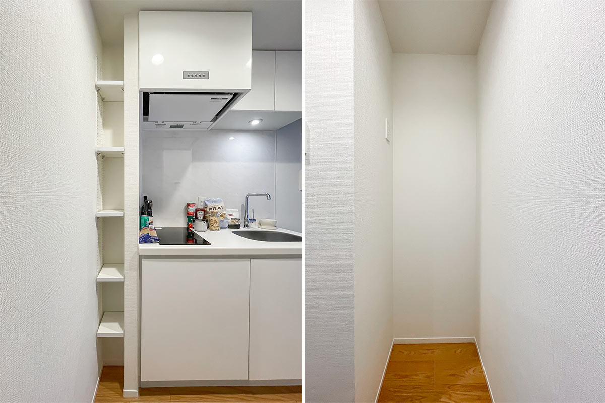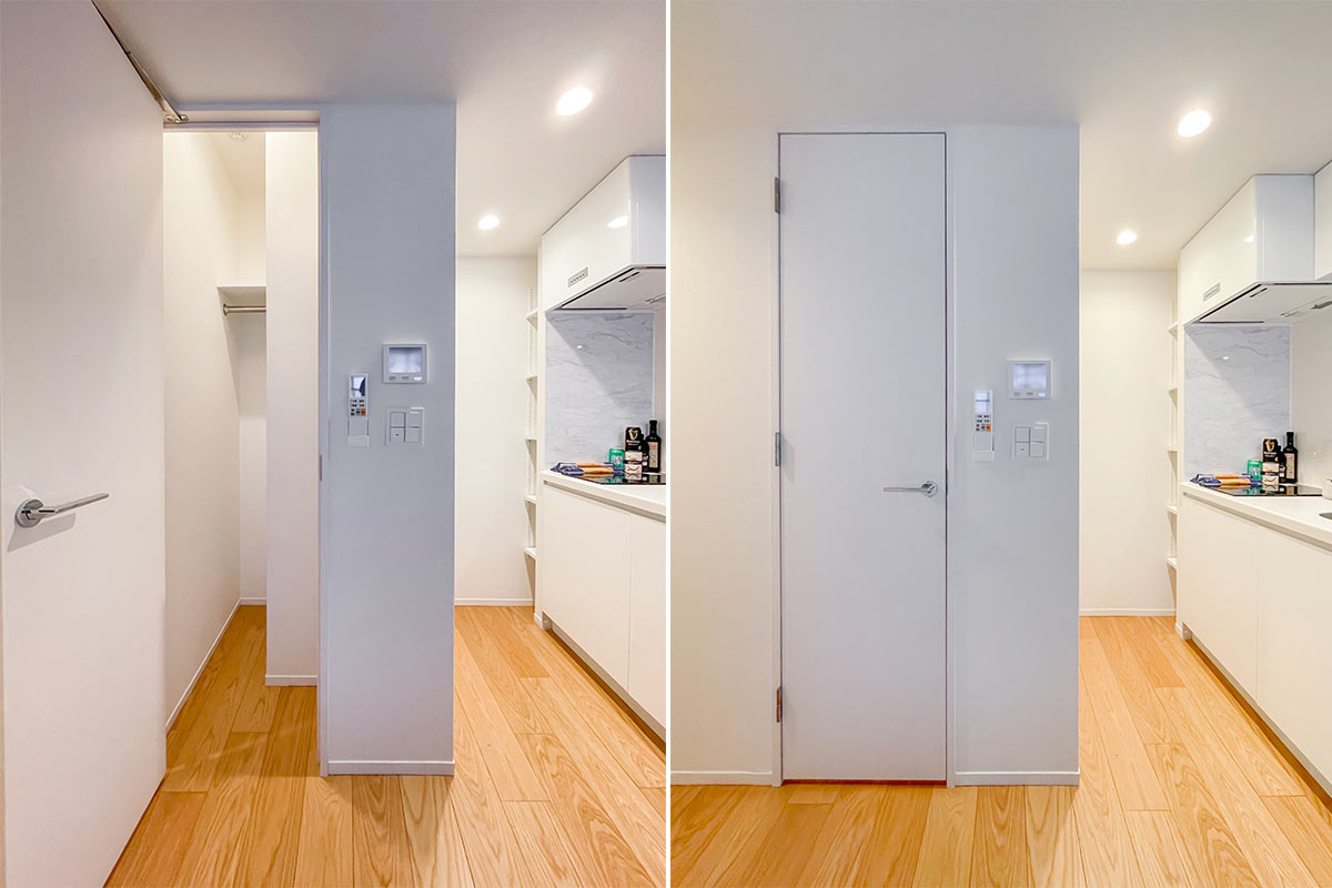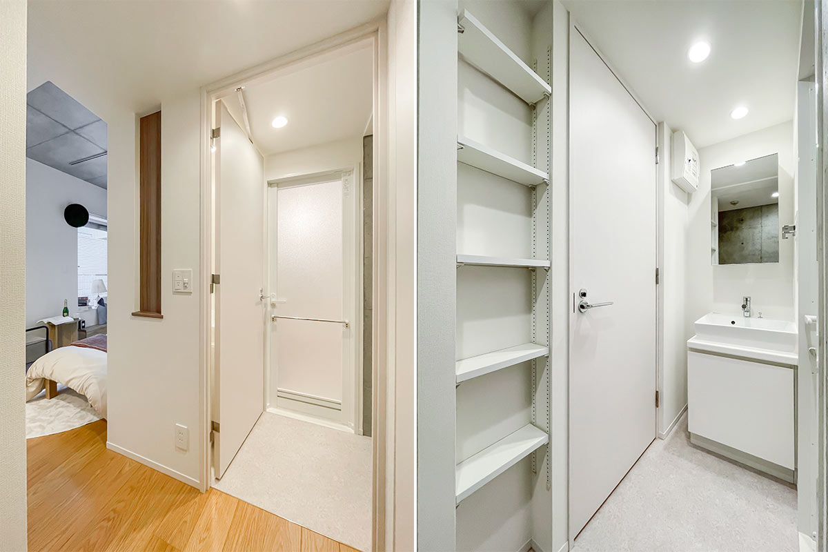 玄関には靴箱のほかに、ニッチがあり、鍵を置いたり、アートを飾ったりすることができます。