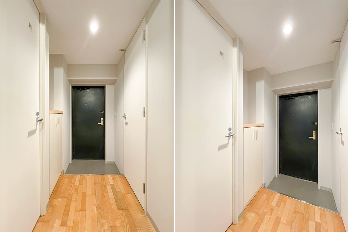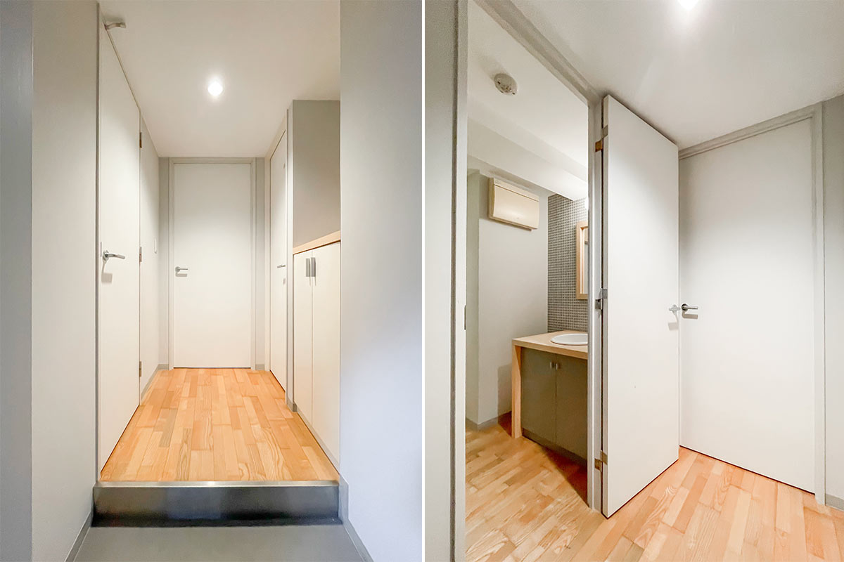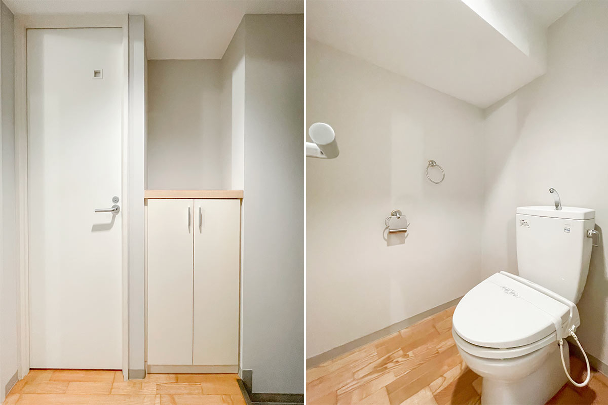 水回りは玄関からすぐ。コンパクトな1人暮らしのお部屋にありがちな水回りは1つの空間にはなっておらず、トイレは洗面等とは別。来客があっても安心です。