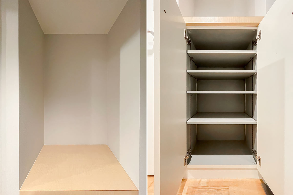 ウォークインクローゼットがあるのと同じくらいの収納力がありますよ。部屋の中は、すっきりと暮らせそうです。