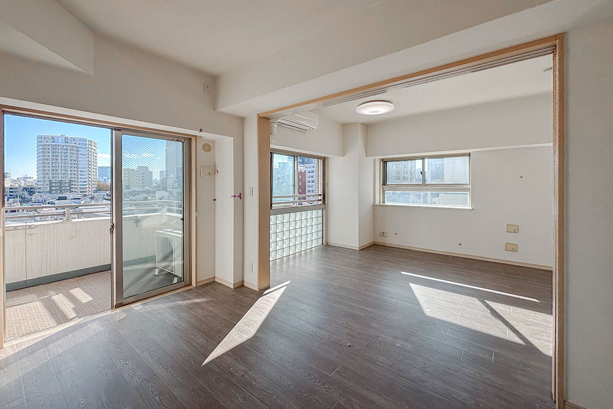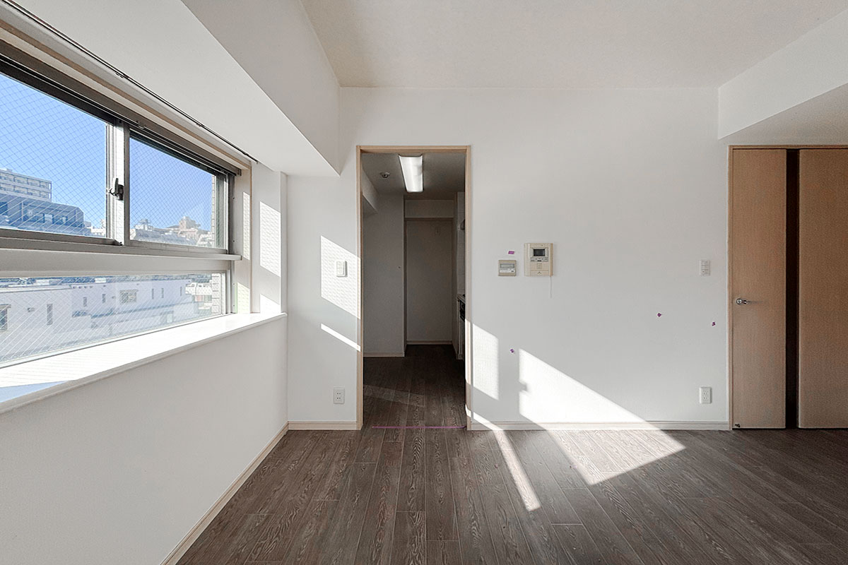 お部屋は6階の角部屋、約42㎡の1LDK。