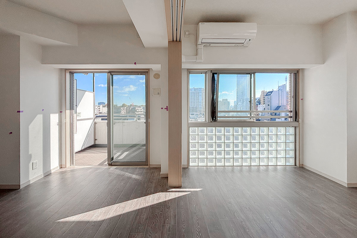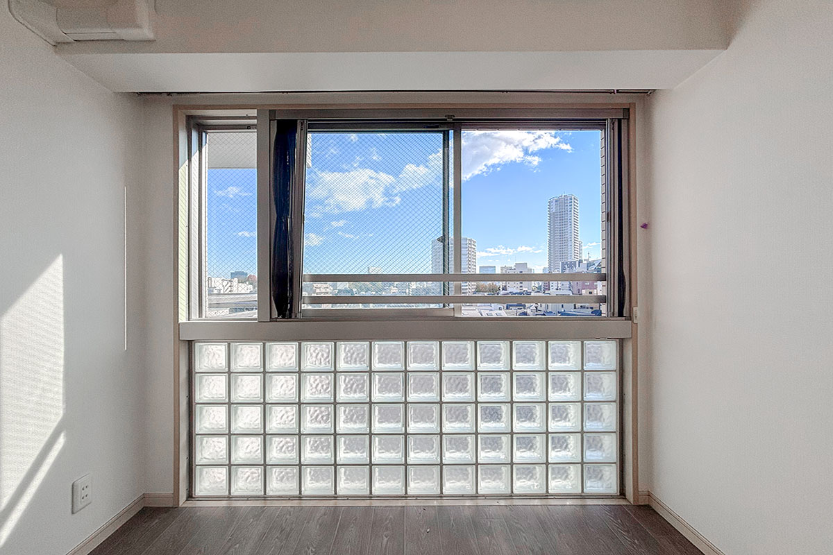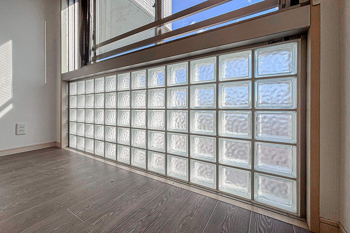 リビングには窓が3箇所、ガラスブロックの採光もなかなかステキです。