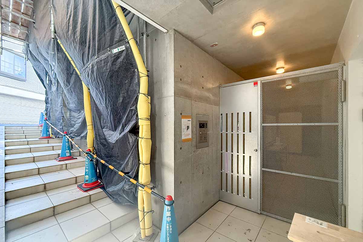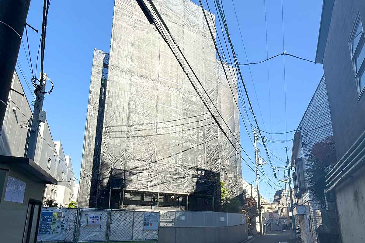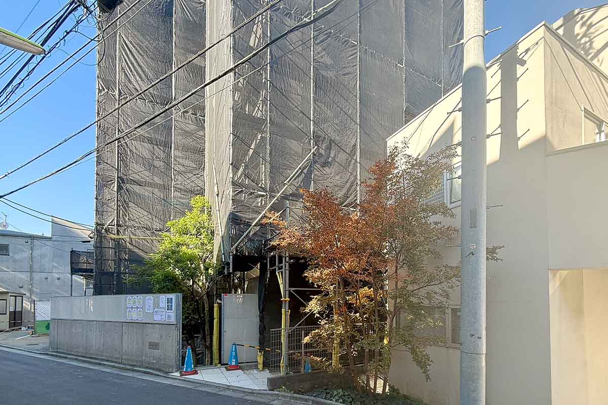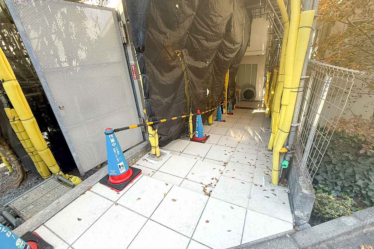 現在外壁工事中のため建物はシートで覆われ足場が組まれていますが、工事は年明け1月までの予定。