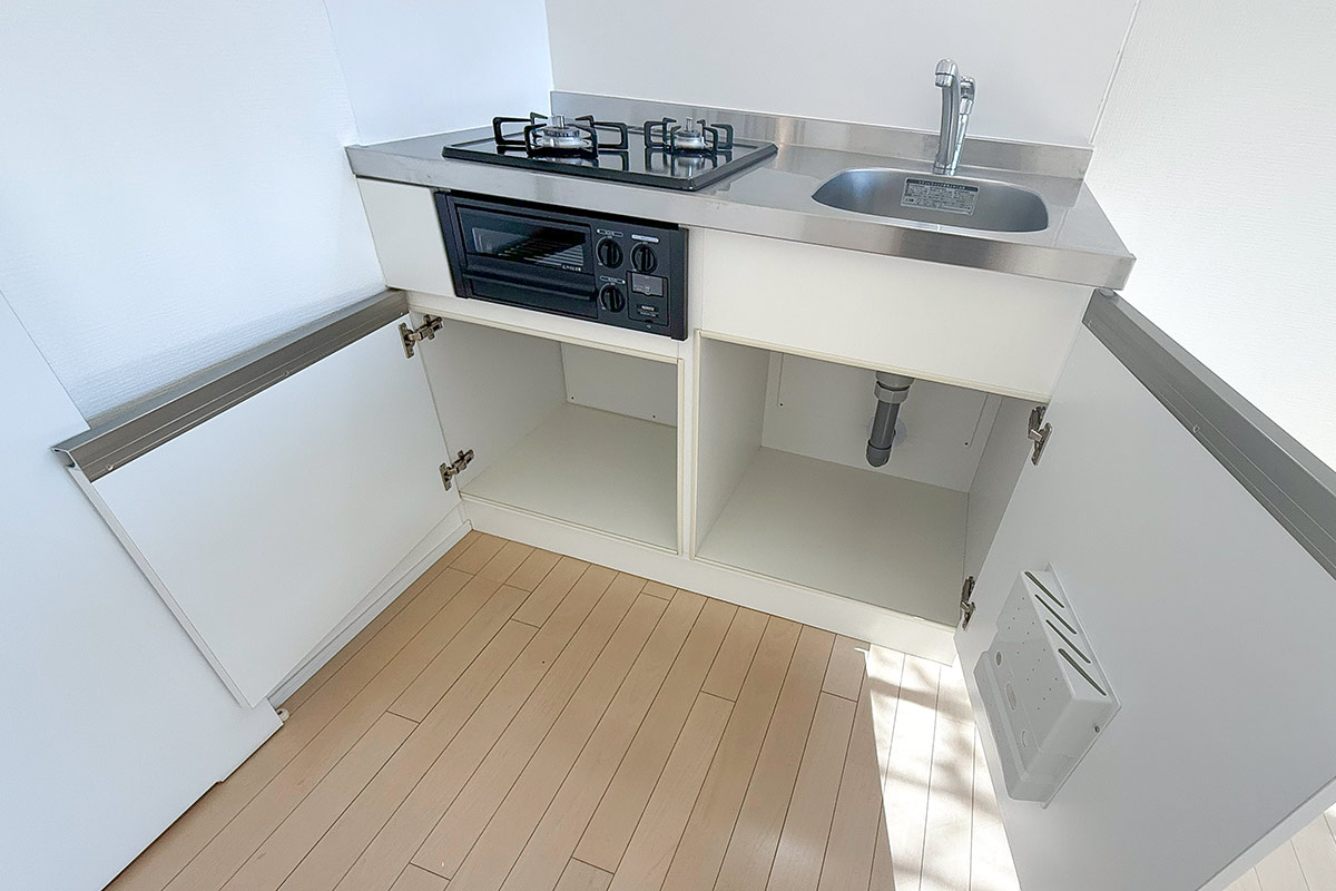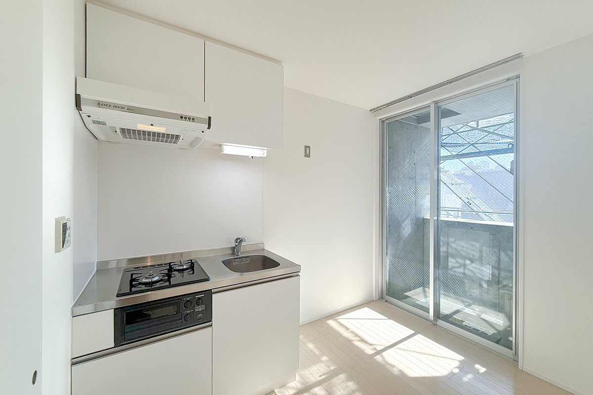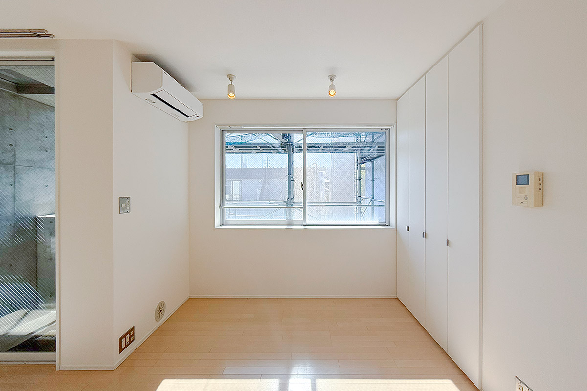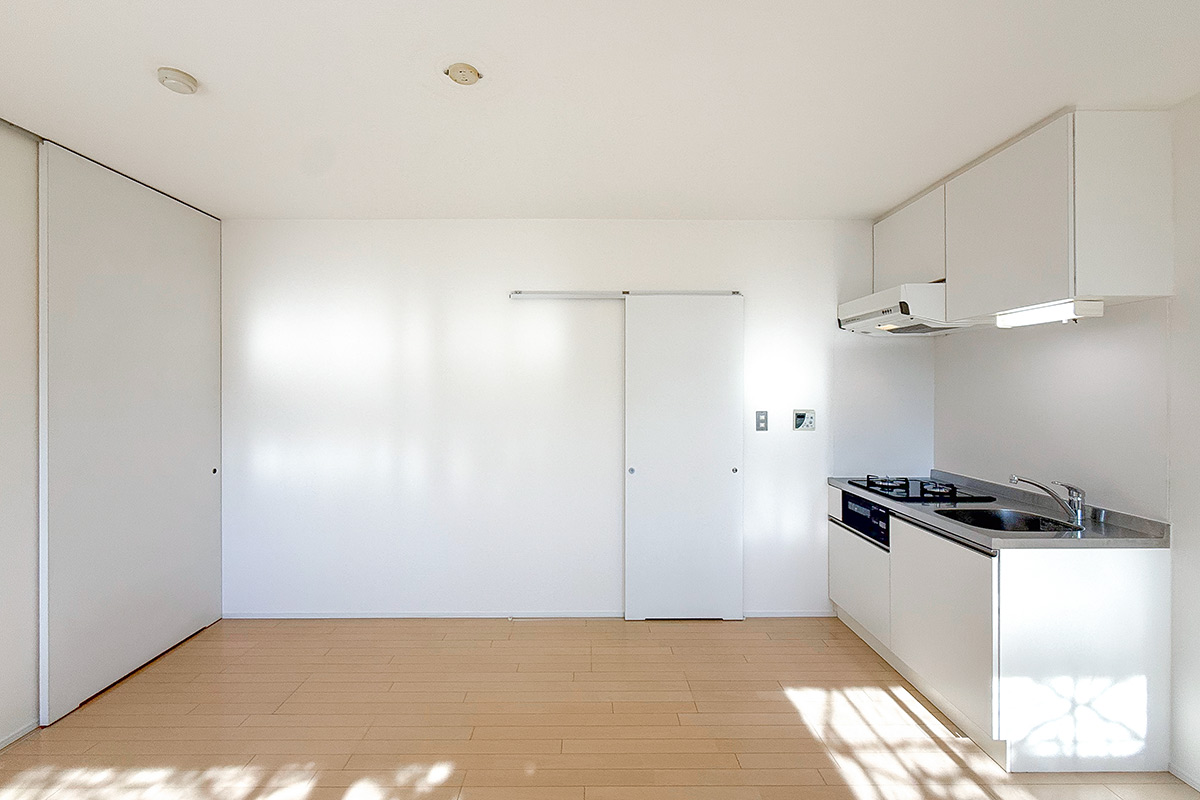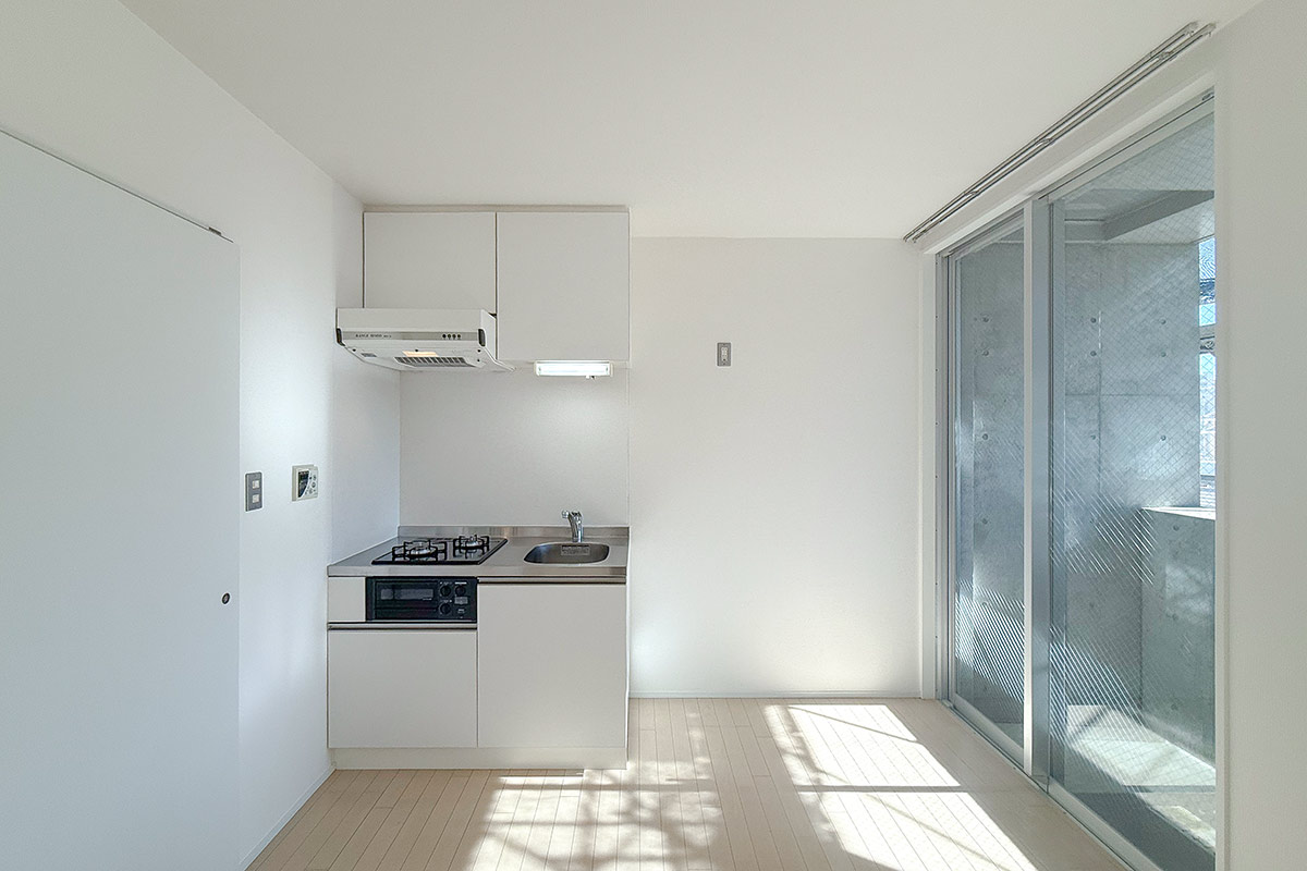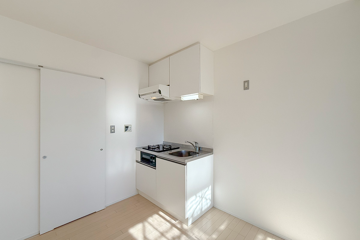 玄関は居室の間にスライドドアがあり、ワンルームでも来客時の目隠しができる嬉しい設計◎