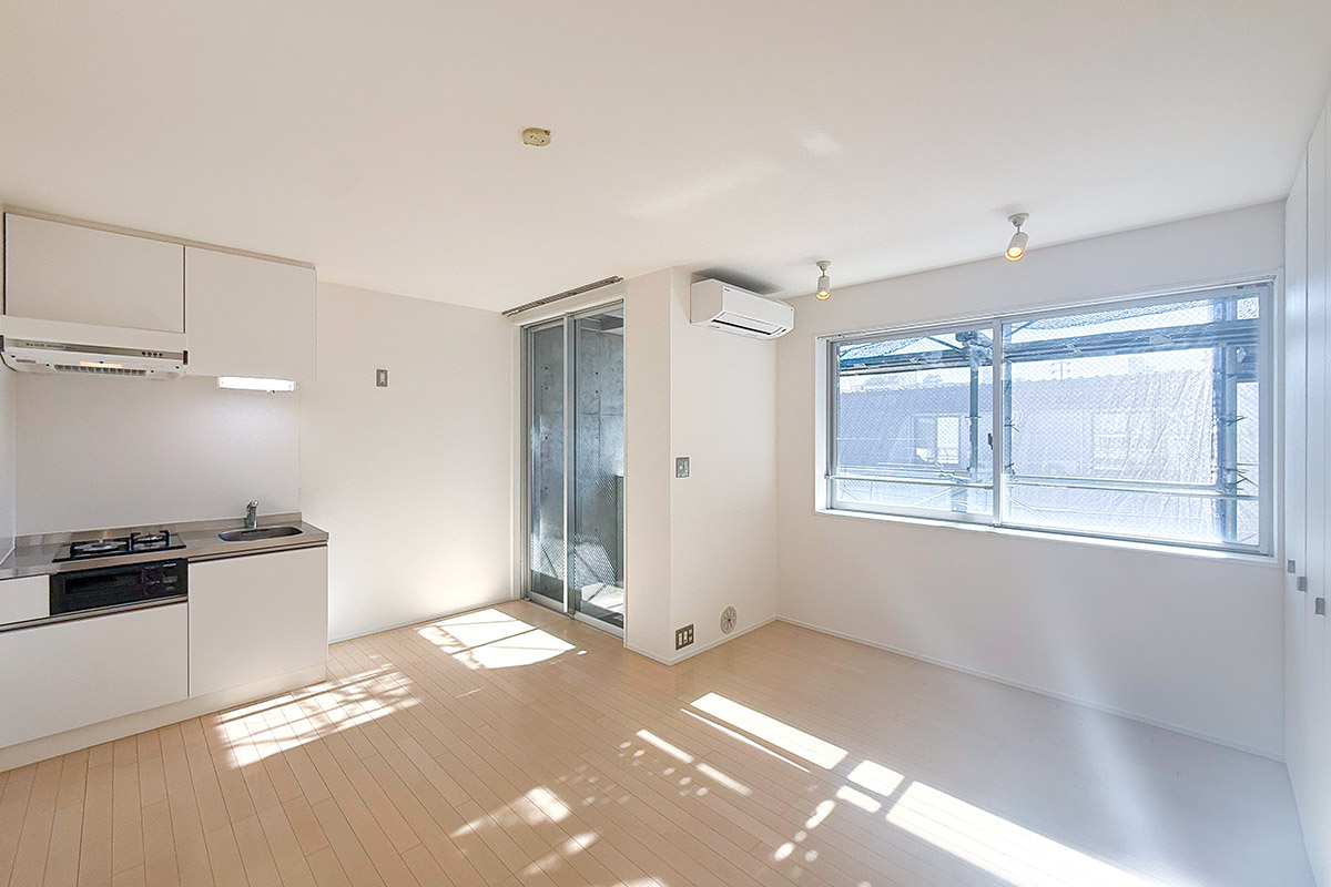 角にコンパクトなバルコニーがあって、窓も南向きでとっても陽当たりの良いお部屋!