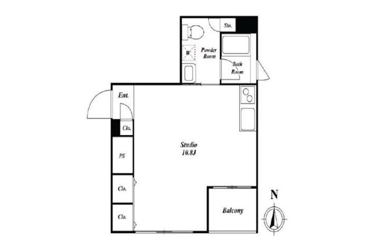 募集中のお部屋は5階のワンルームタイプで居室は10.8帖ほど。