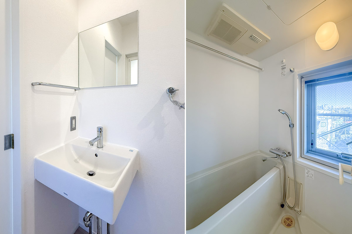水回りの設備も充実していて、バスルームには浴室乾燥機や追焚機能、換気のしやすい小窓付き!