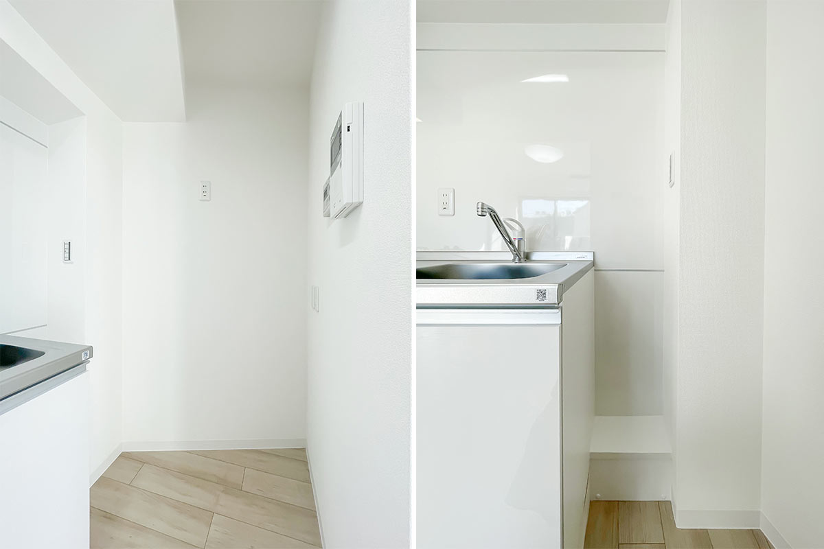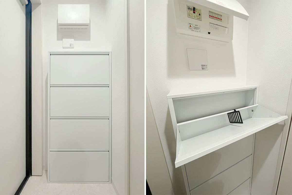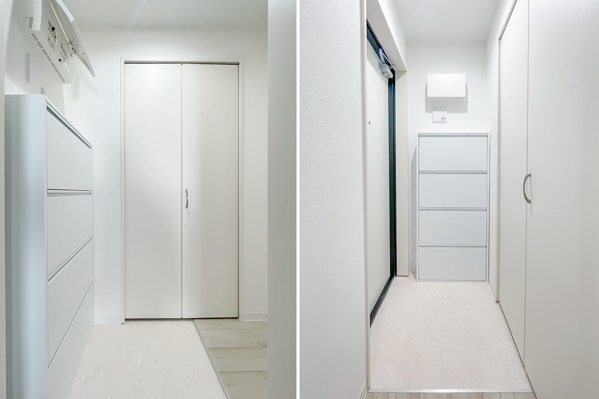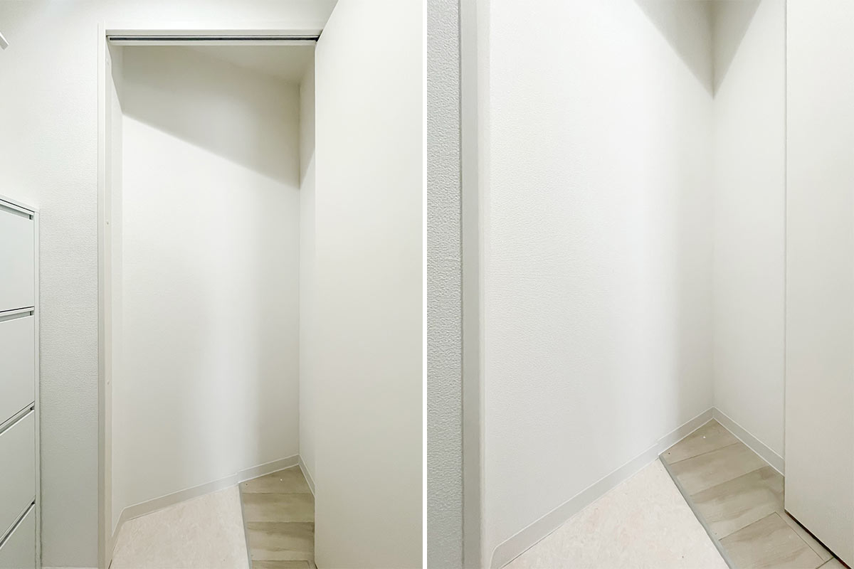 収納は洋室のオープンクローゼットのほか、玄関にも靴箱以外の収納スペースがあります。