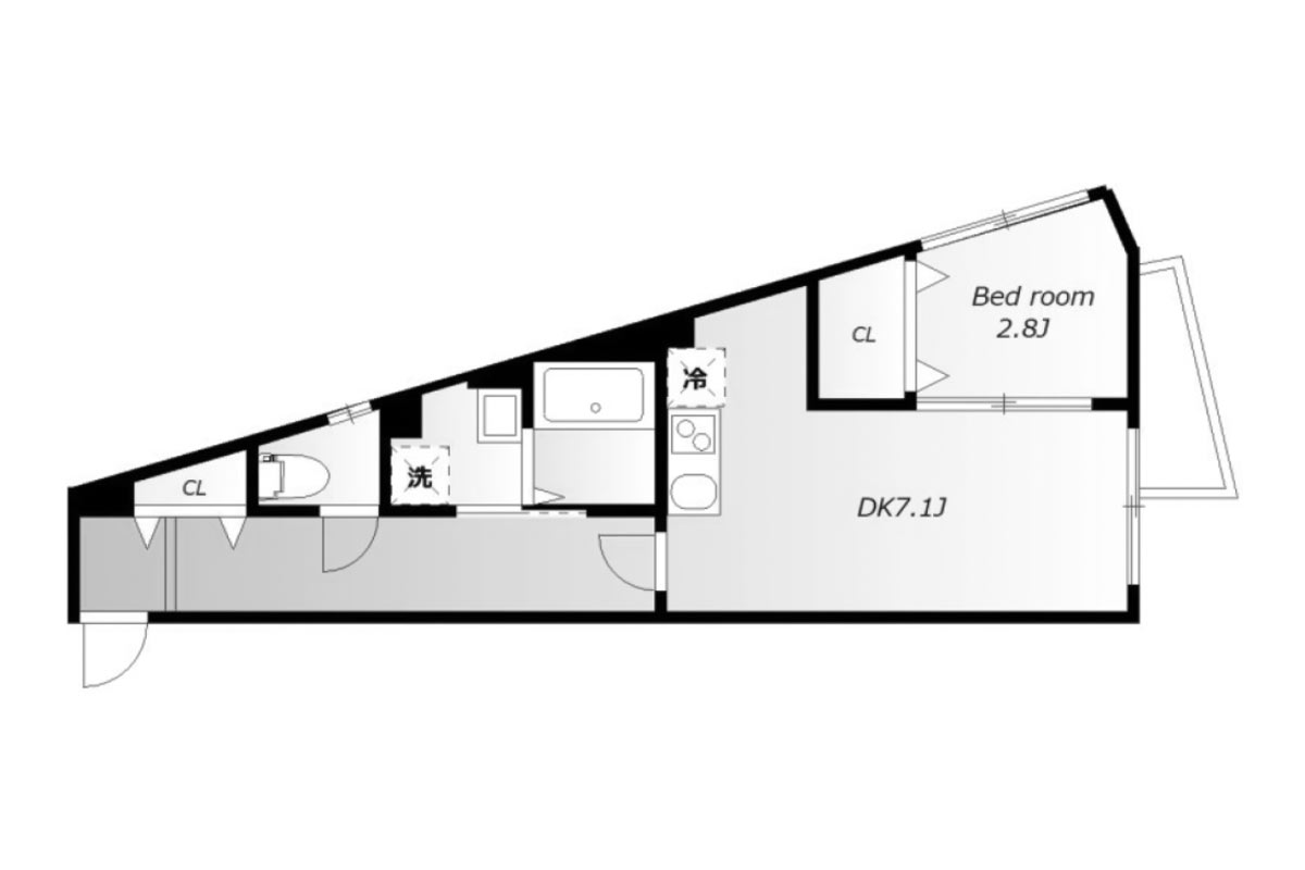 お部屋は3階、約28㎡の1DK。