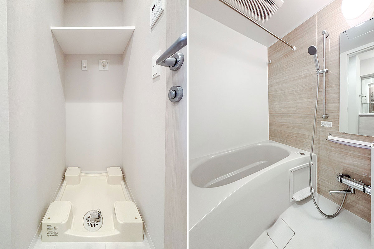 水回りは独立洗面台あり、浴室乾燥や追い焚きといったQOL向上の機能が揃っています。