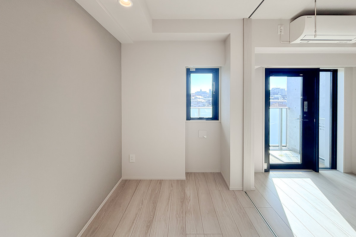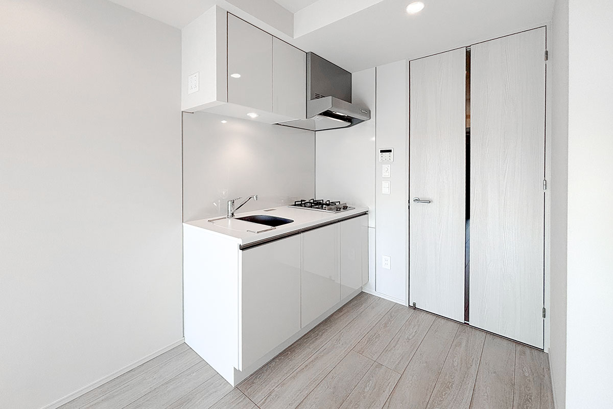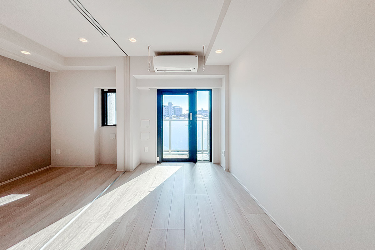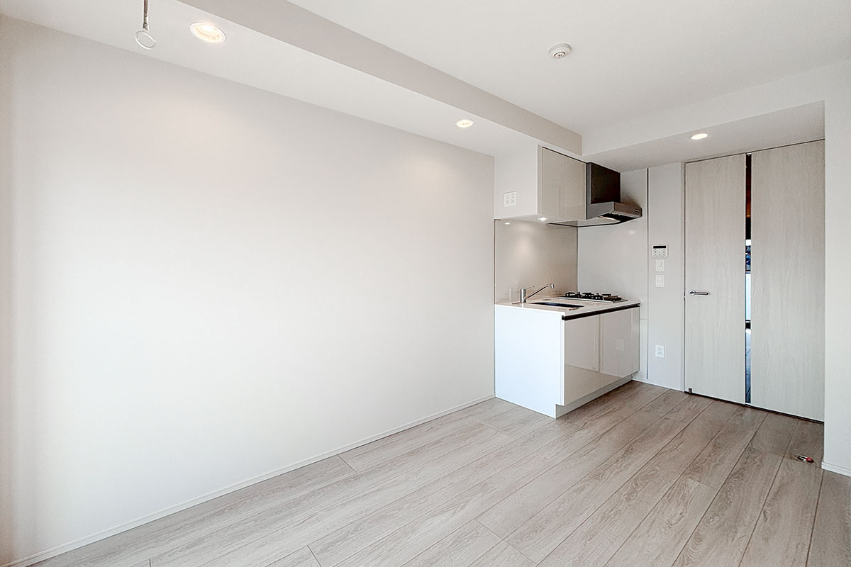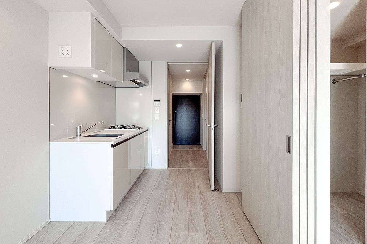 お部屋は5階の約25㎡、白基調の内装が爽やかな1DKです。