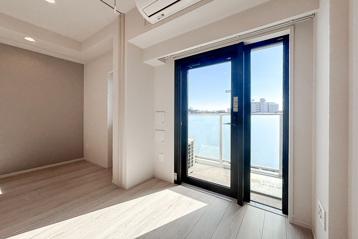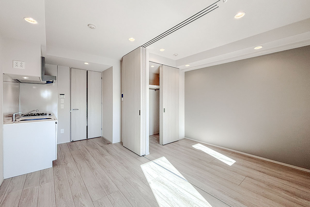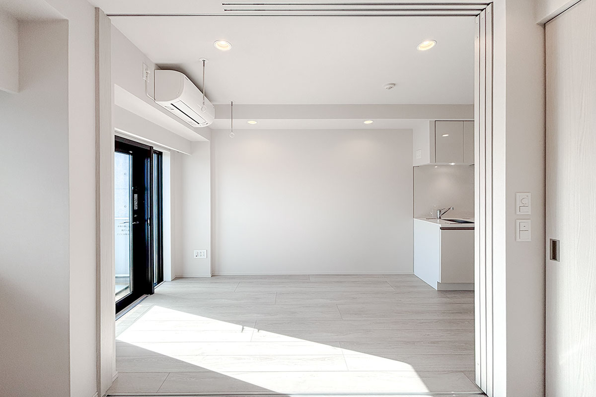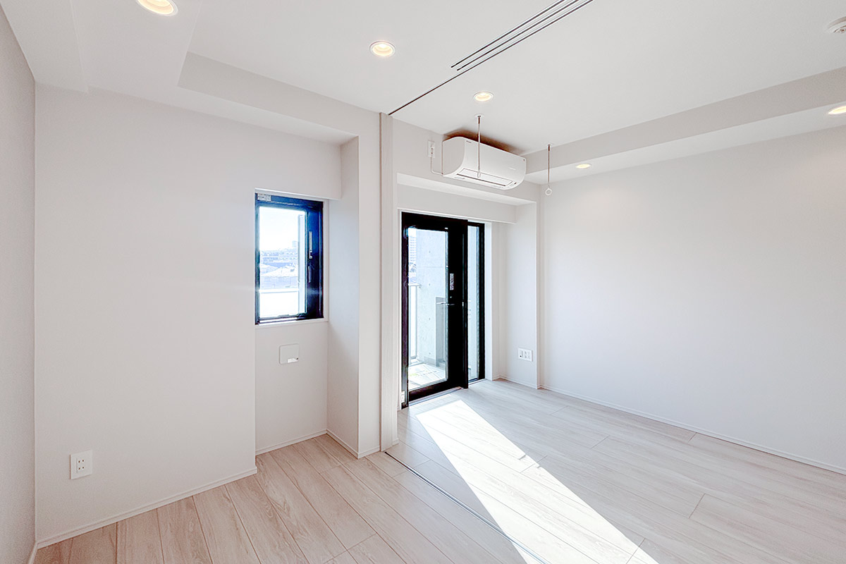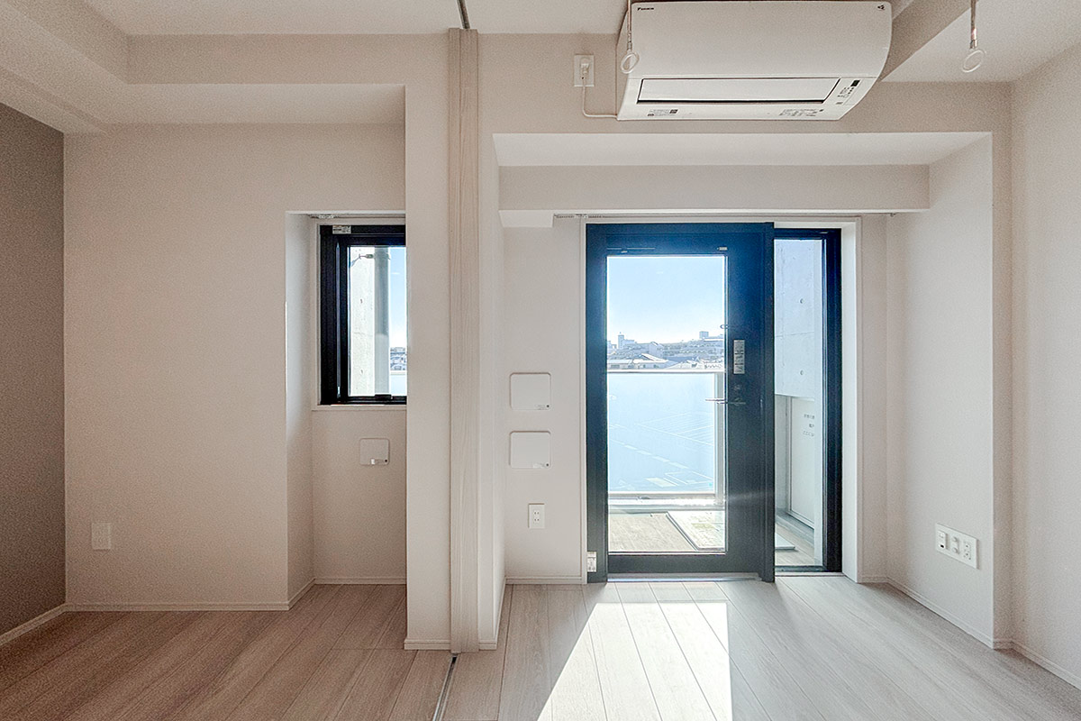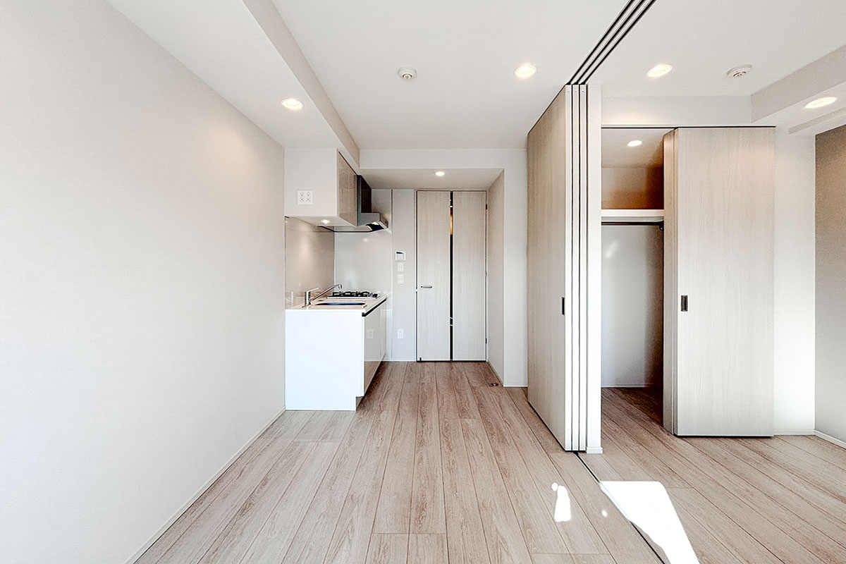 お部屋は5階の約25㎡、白基調の内装が爽やかな1DKです。