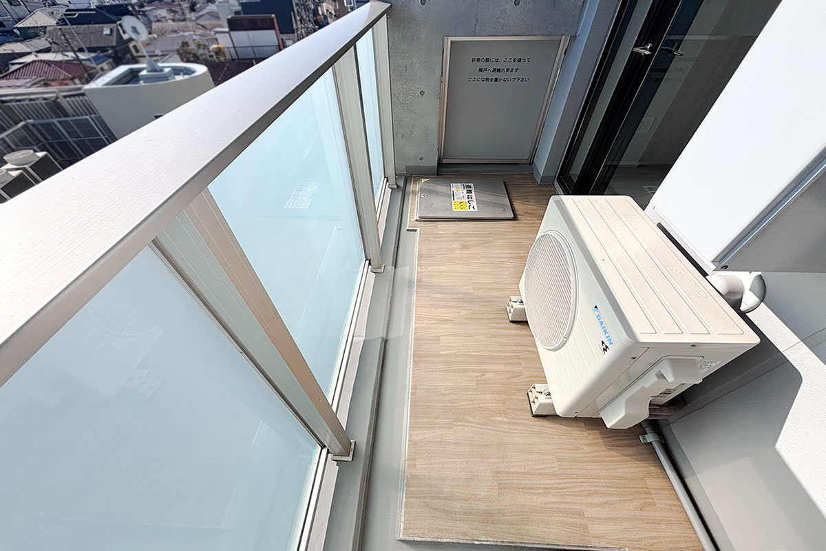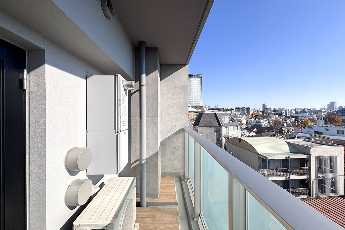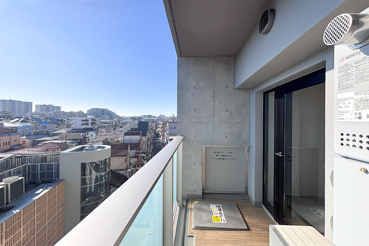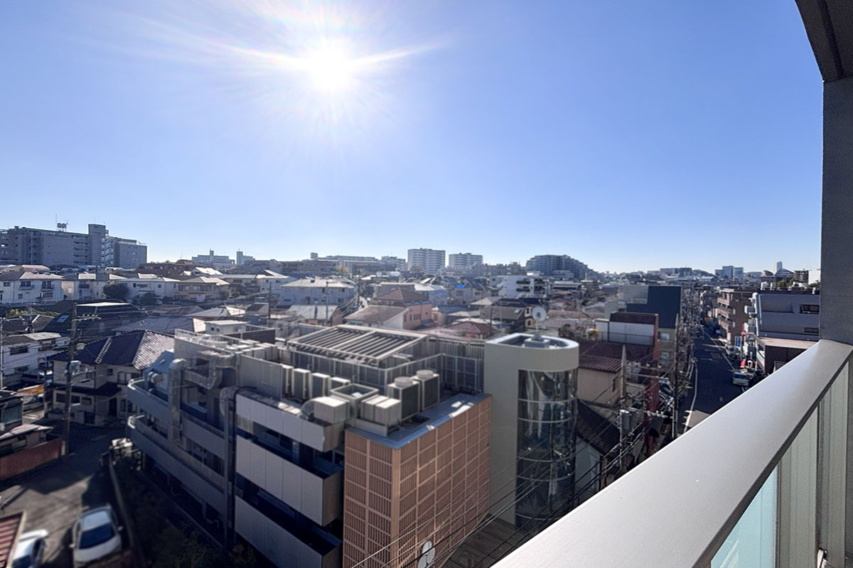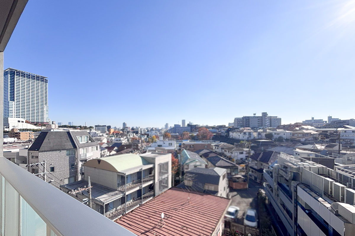 バルコニーも首都高とは反対側のため、駅徒歩2分とは思えない、穏やかな街並み眺める眺望が広がっていました。