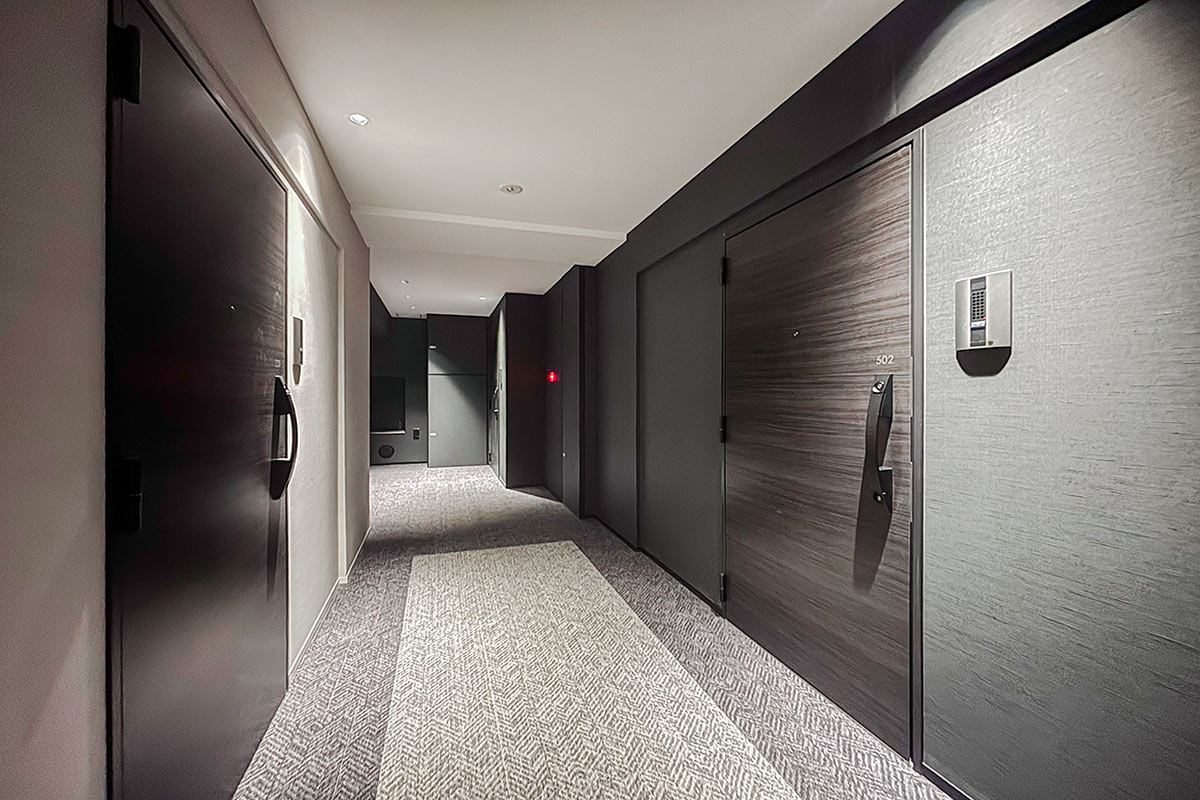 共用部はホテルライクな内廊下設計で雨の日も安心!