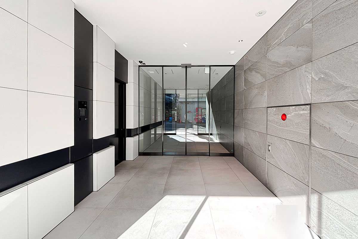 ですが!エントランスは一本通りを入った反対側にあり、だいぶ賑やかさが和らぎます。