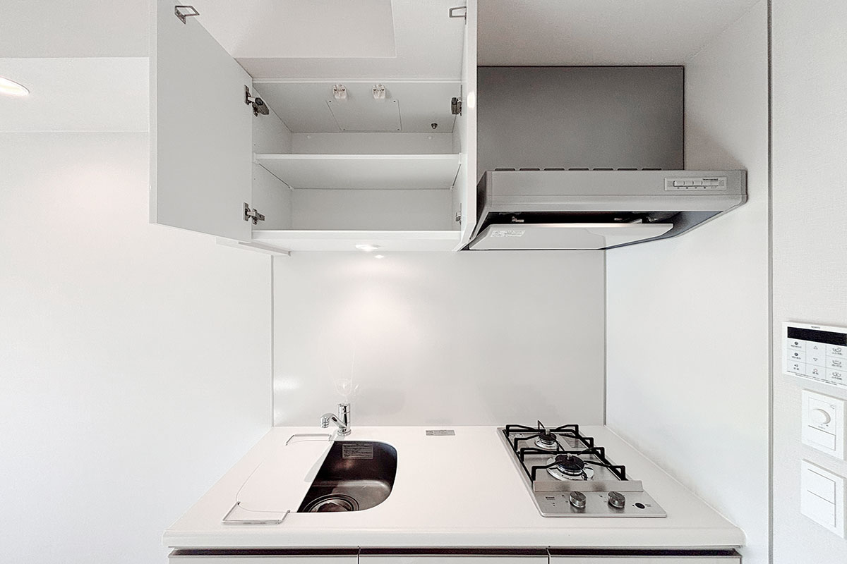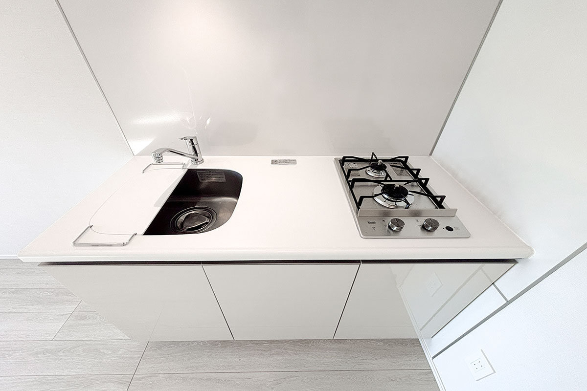 キッチンは作業スペースもあり、2口コンロでささっと調理もしやすいです◎