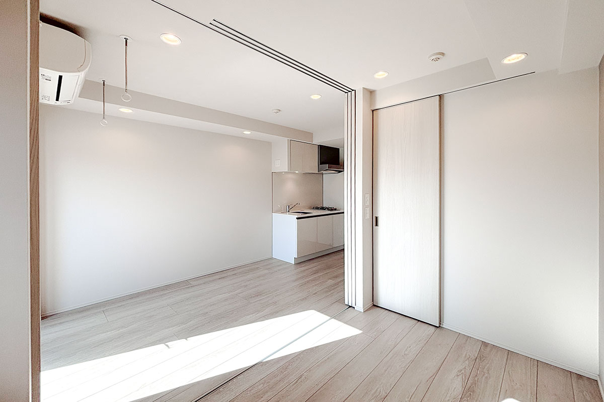 家具配置にもよりますが、仕切り扉は開放してワンルームのように使うのがよさそう。