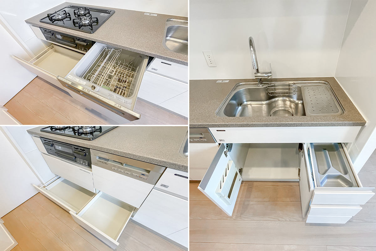 キッチンは3口コンロ・グリル付きで、なんと食洗機付き!