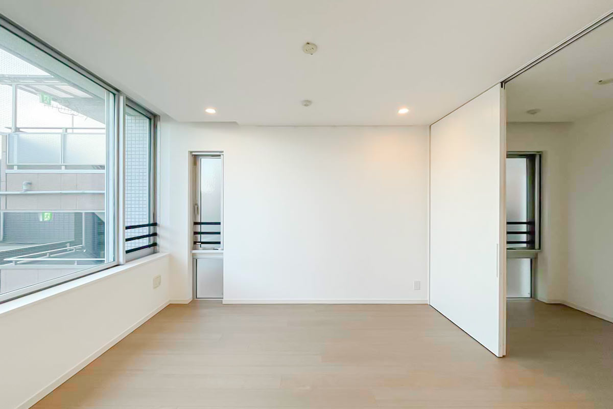 募集の部屋は2階の角部屋、約50㎡の1SLDK。
