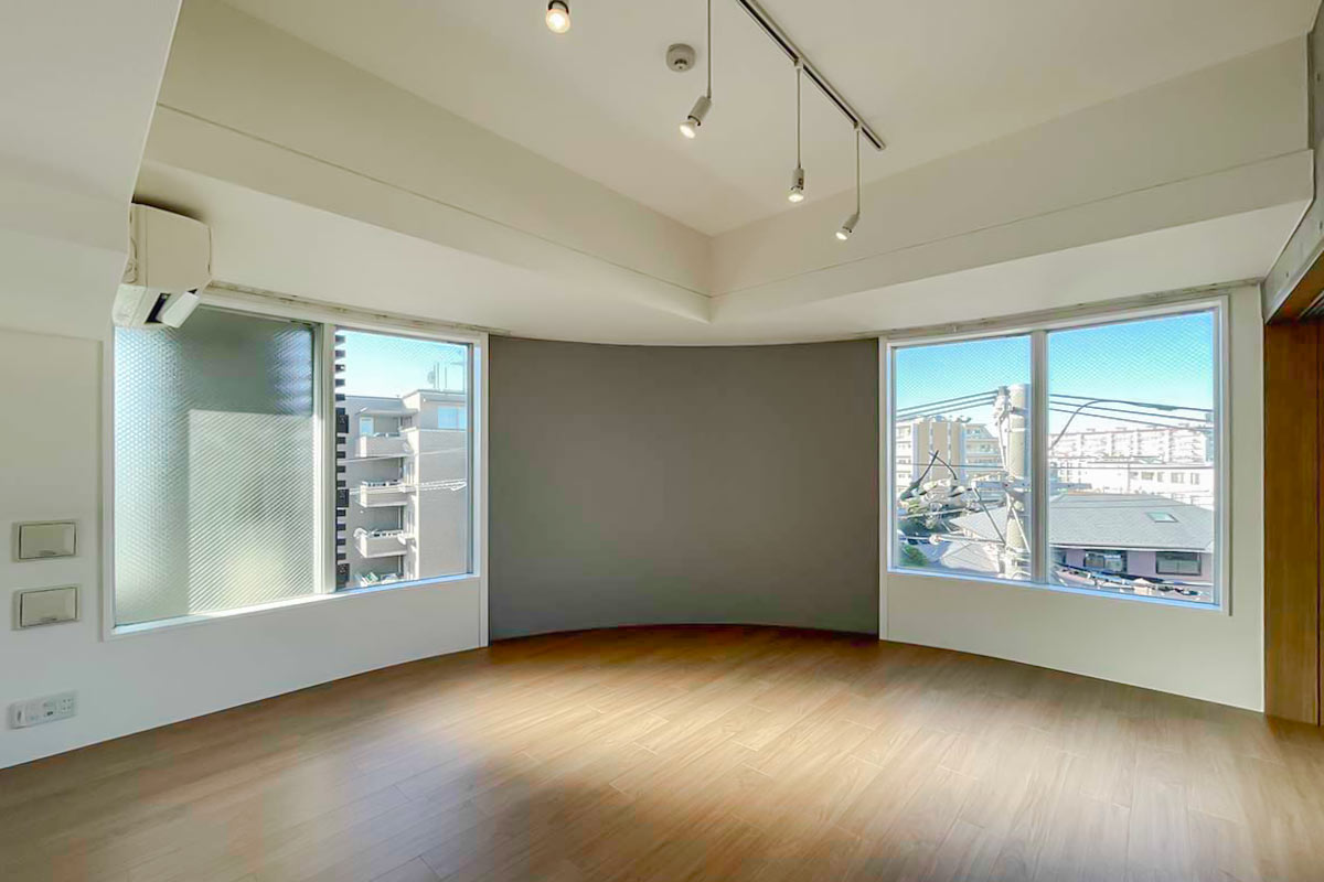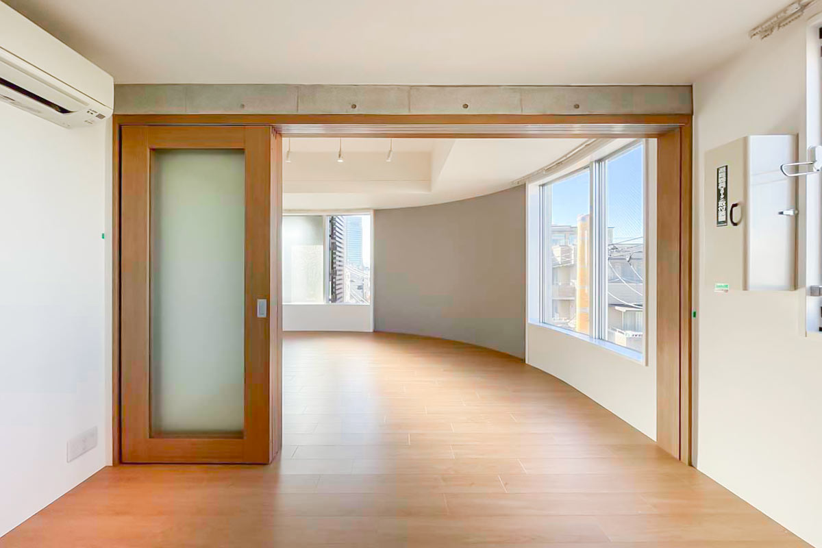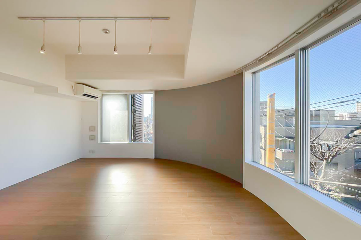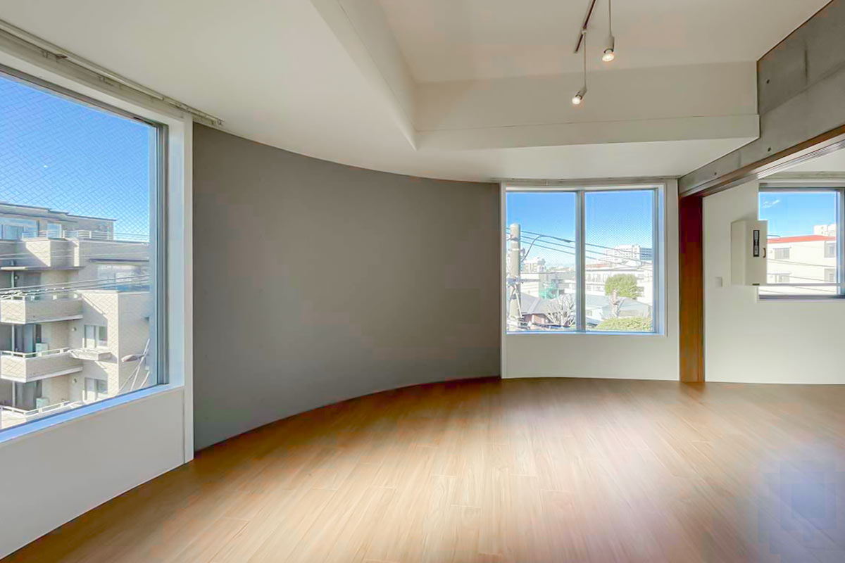 カーブ窓のある遊びゴコロあるデザイナーズ物件はいかがでしょうか。