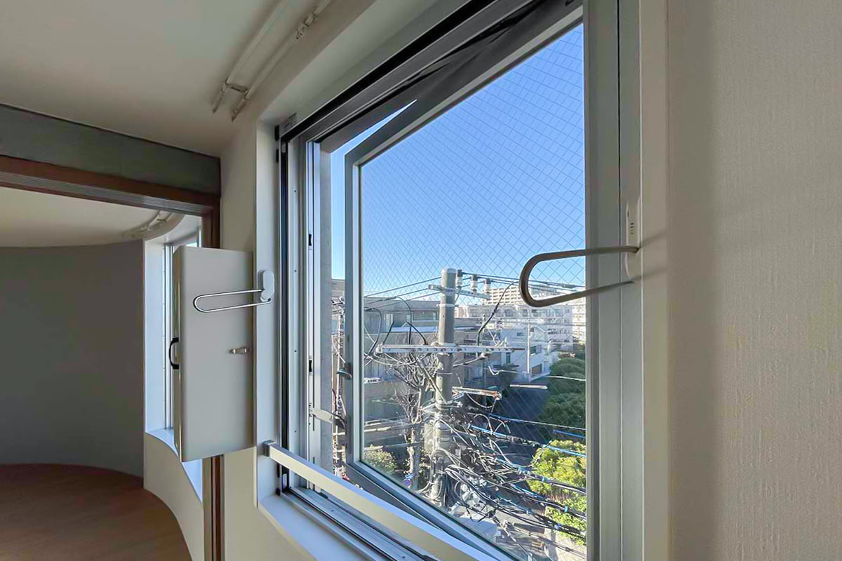 どこを切り取ってもカーブ窓が目に入り、部屋のアクセントになってくれますね。