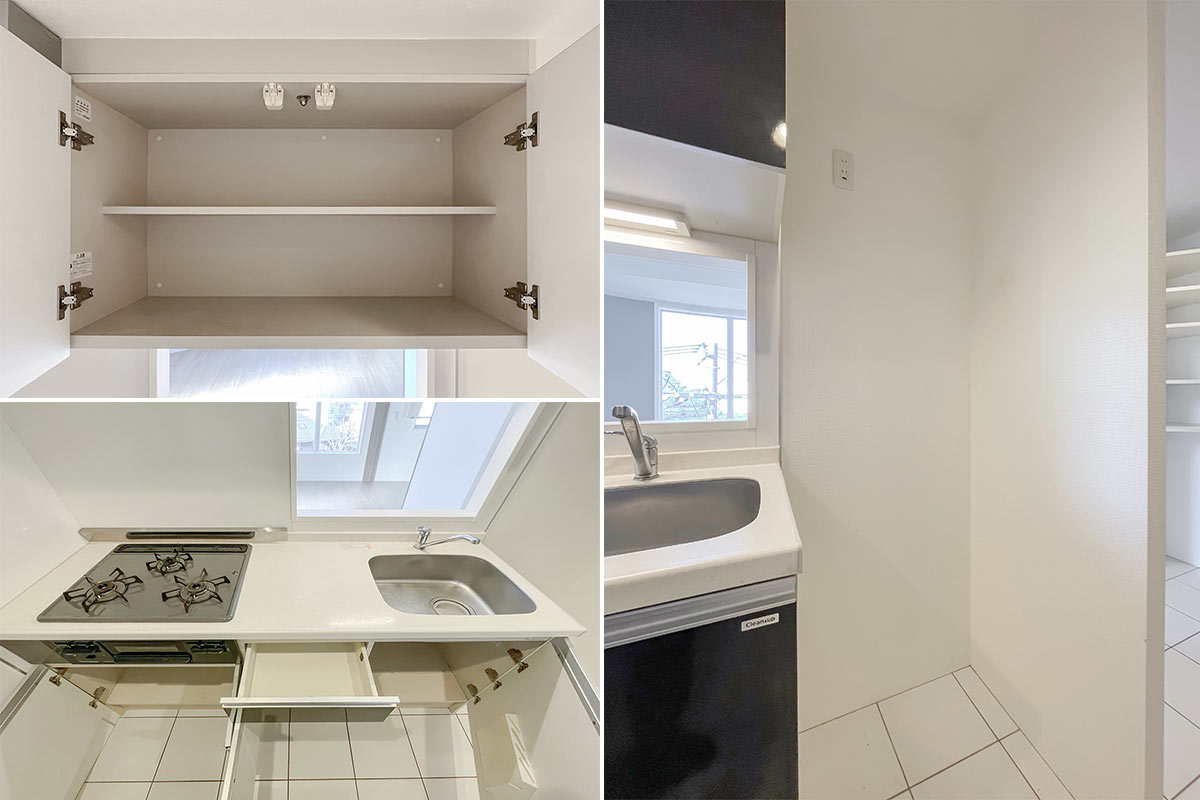 エアコン、B.T別室、モニター付ドアホン、独立洗面化粧台、室内洗濯機置場、都市ガス、エレベーター、温水洗浄便座、浴室乾燥機、カウンターキッチン、システムキッチン、インターネット光、BS、CS、収納スペース、オートロック、宅配ボックス、敷地内ごみ置場、防犯カメラ、デザイナーズ、最上階、角部屋、駐輪場
