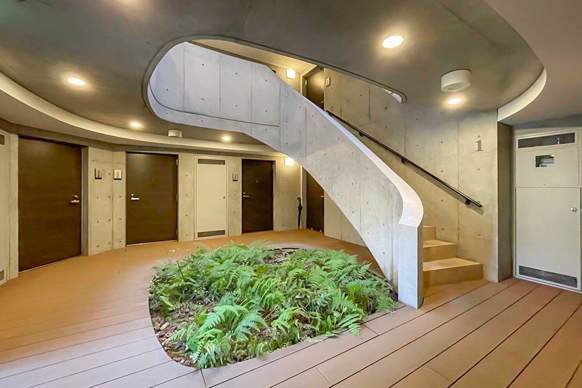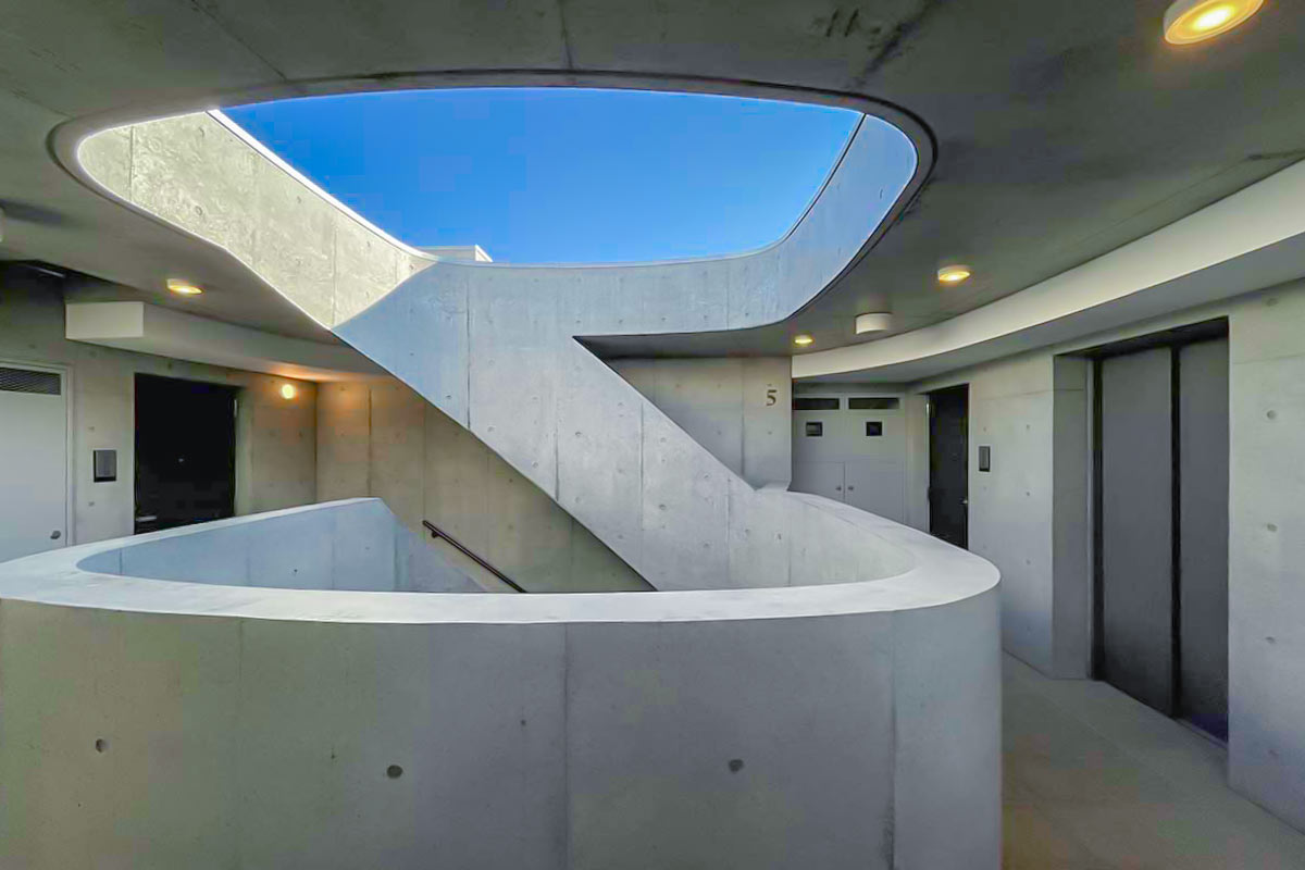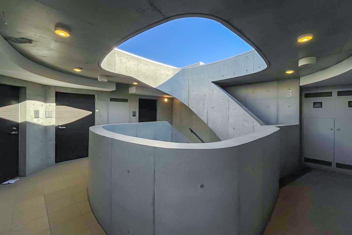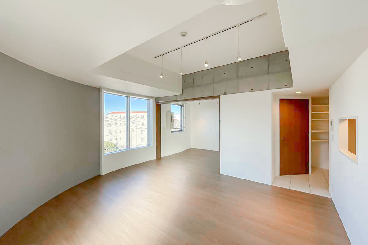 しなやかな曲線を描いている外観が目を惹くデザインで、部屋の中にも曲線が現れています。
