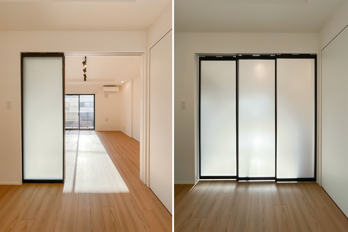 扉は光を通す素材なので、陽が昇れば明るい光が洋室まで届きます。