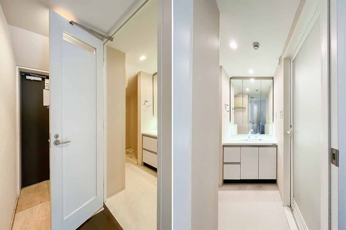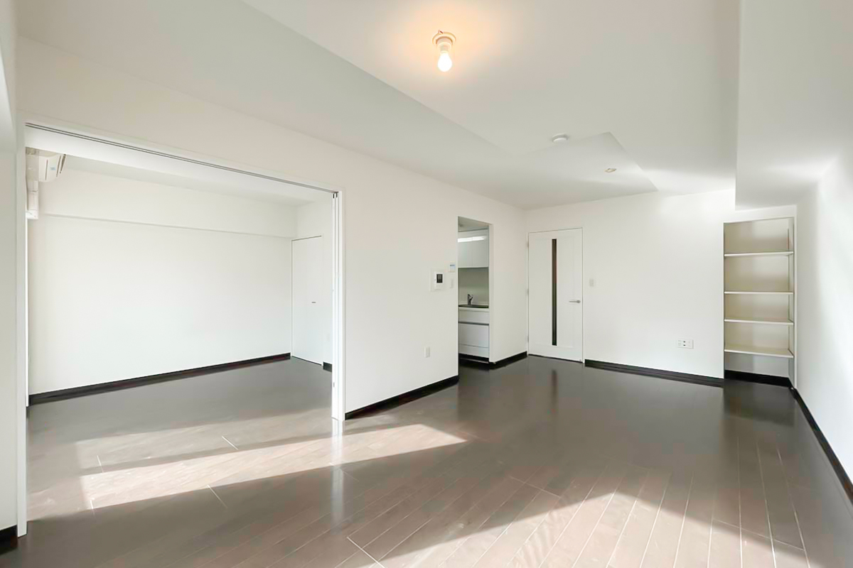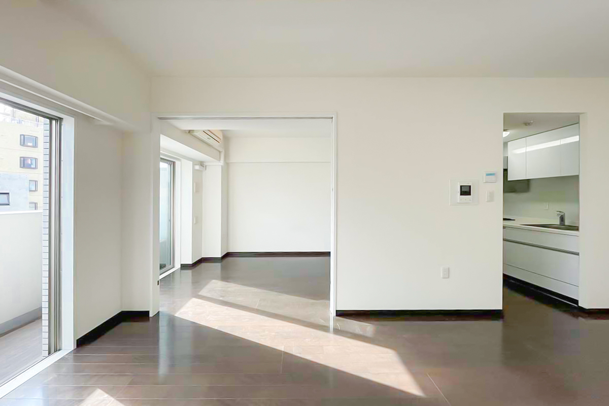 午前中~午後にかけて陽当たり良く、日中はLDと5.7帖の洋室の仕切りは開け放って一体に使うのがおすすめ。
