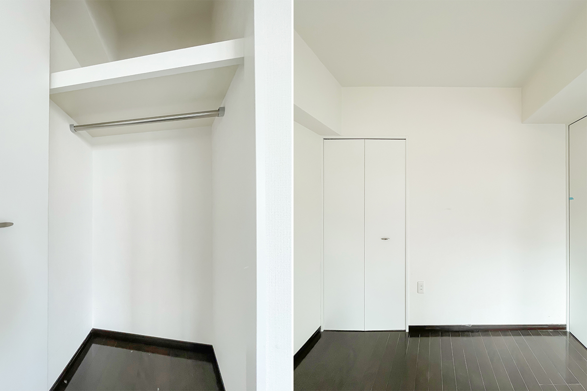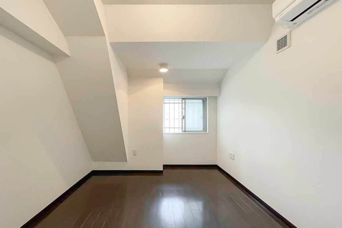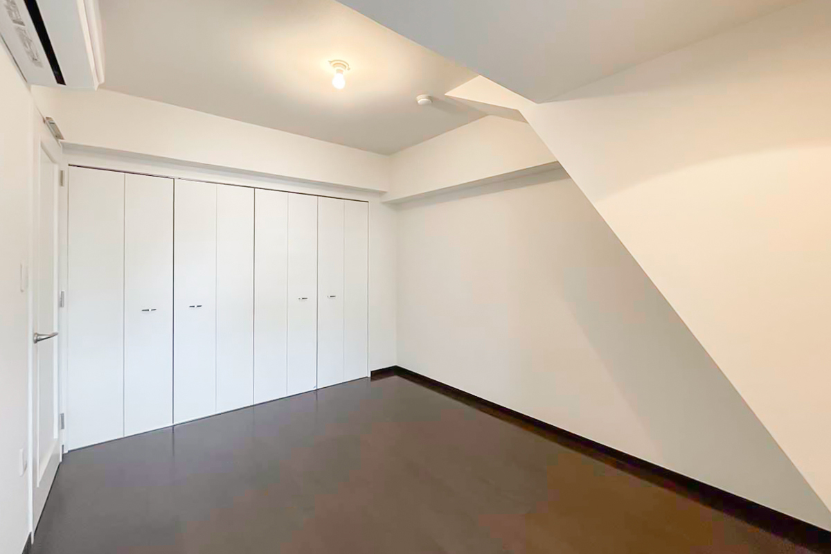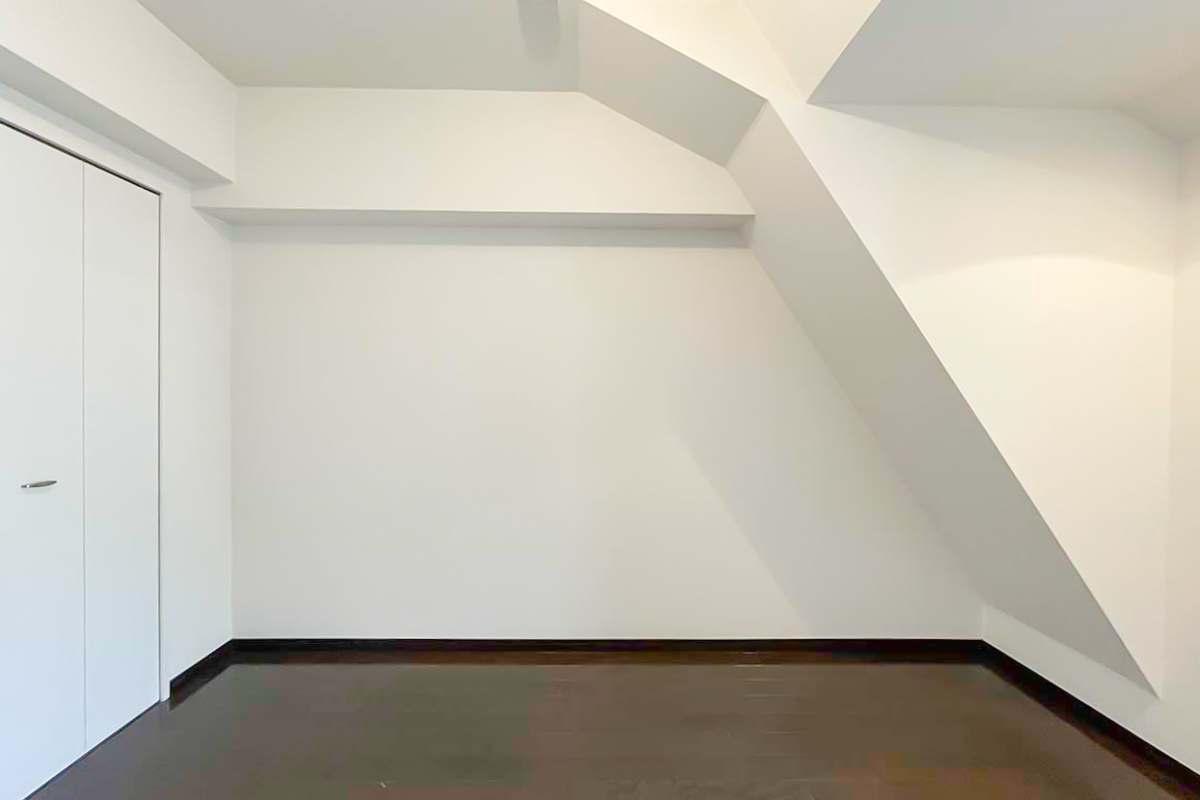 もう1つの6帖の洋室は一部の壁が勾配になりますので、ベッド以外の家具は少し置きにくいかも。