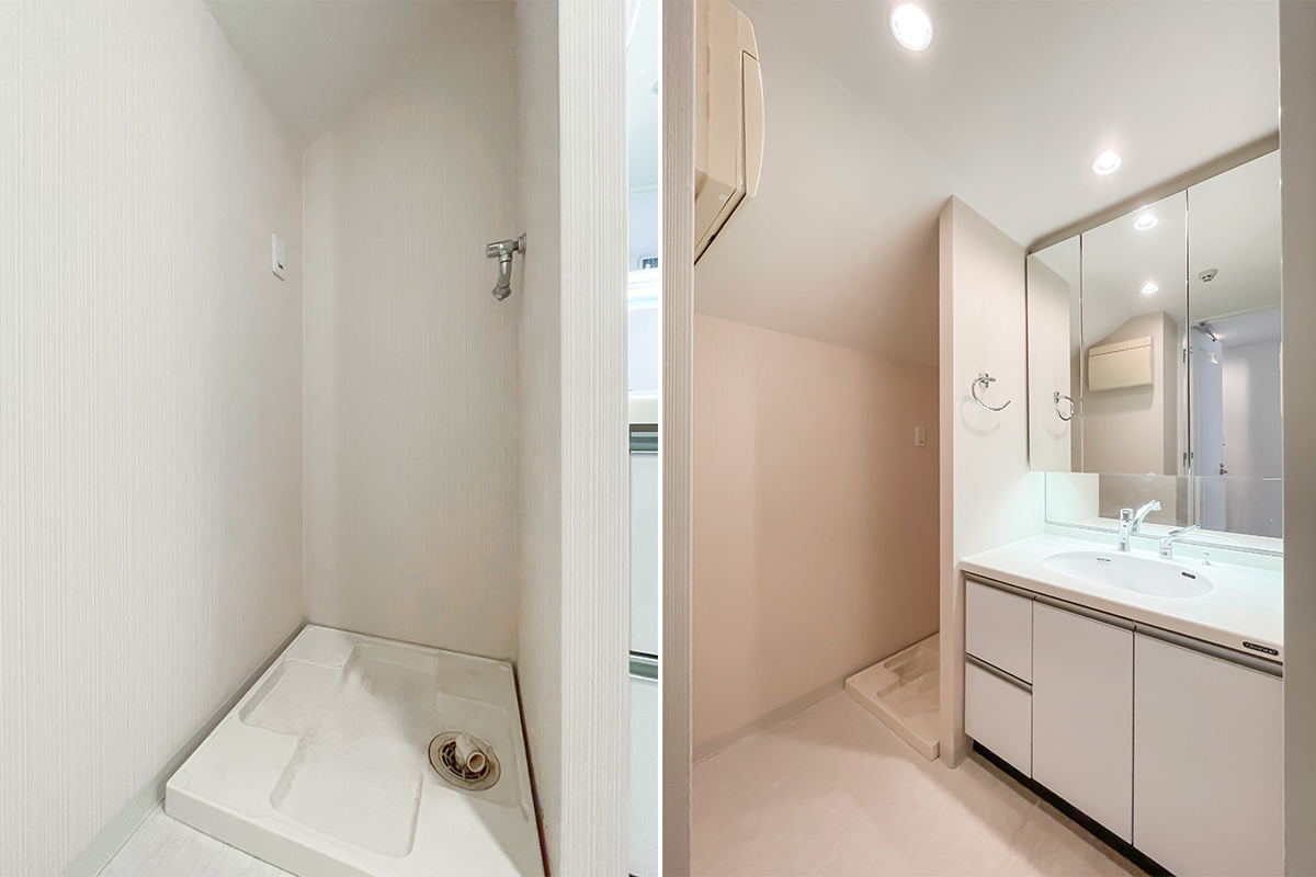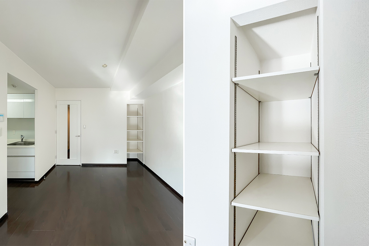 ただこの勾配に合わせた棚を置く/賃貸ピンで棚を取り付けると、勾配がアクセントになってくれるかも?