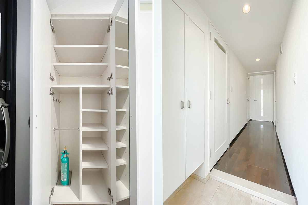 収納量の多さ・スペースの広さだけではなく、ここは小型犬可のお部屋!こうして出入口箇所が限られている形は侵入防止柵も付けやすいですね。