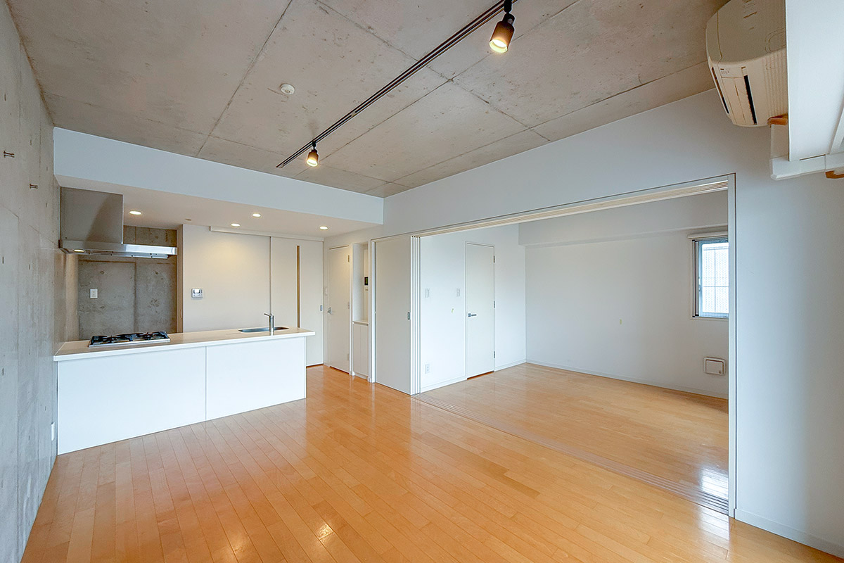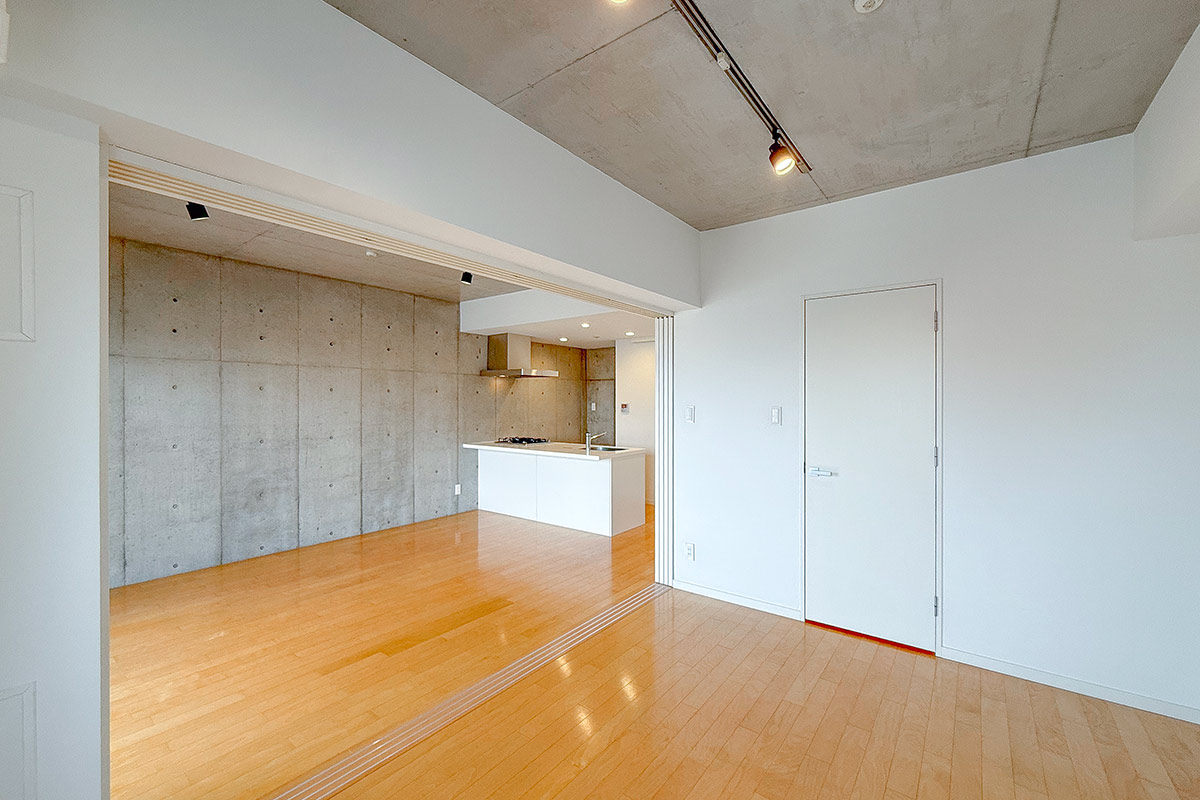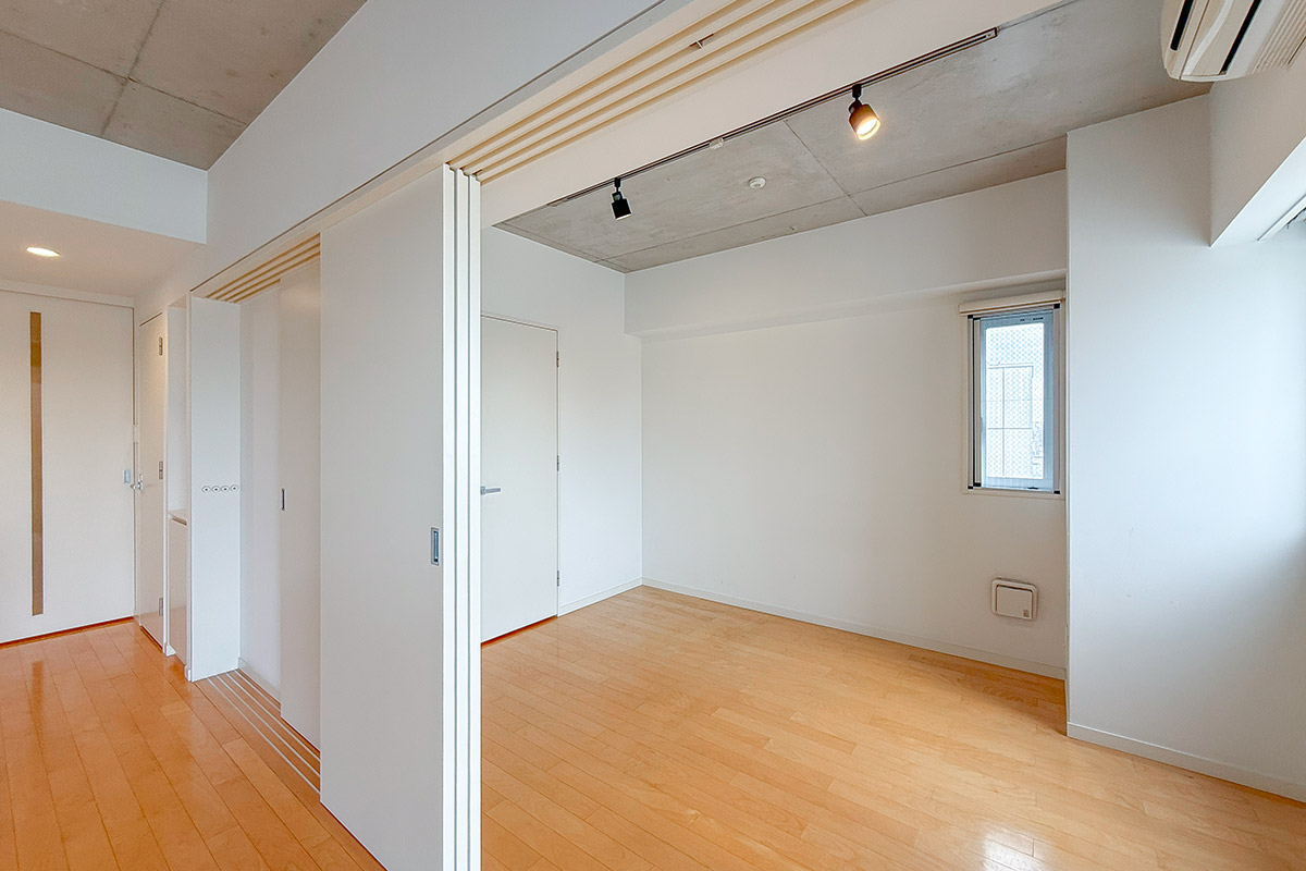 6.4帖の寝室との間はスライドドアなので、全開にすると広いワンルームのように使えて開放感たっぷり◎
