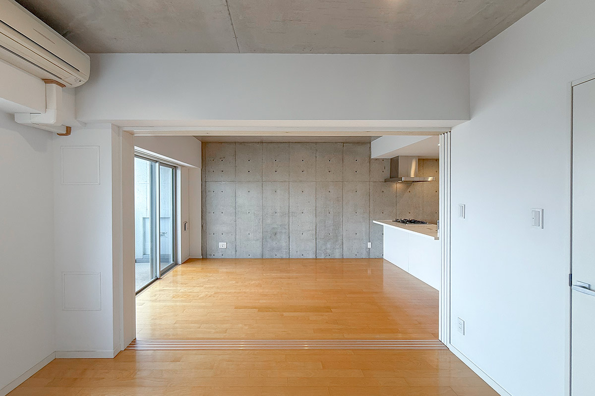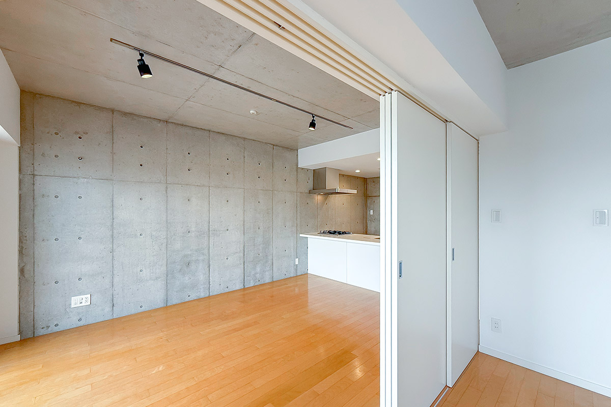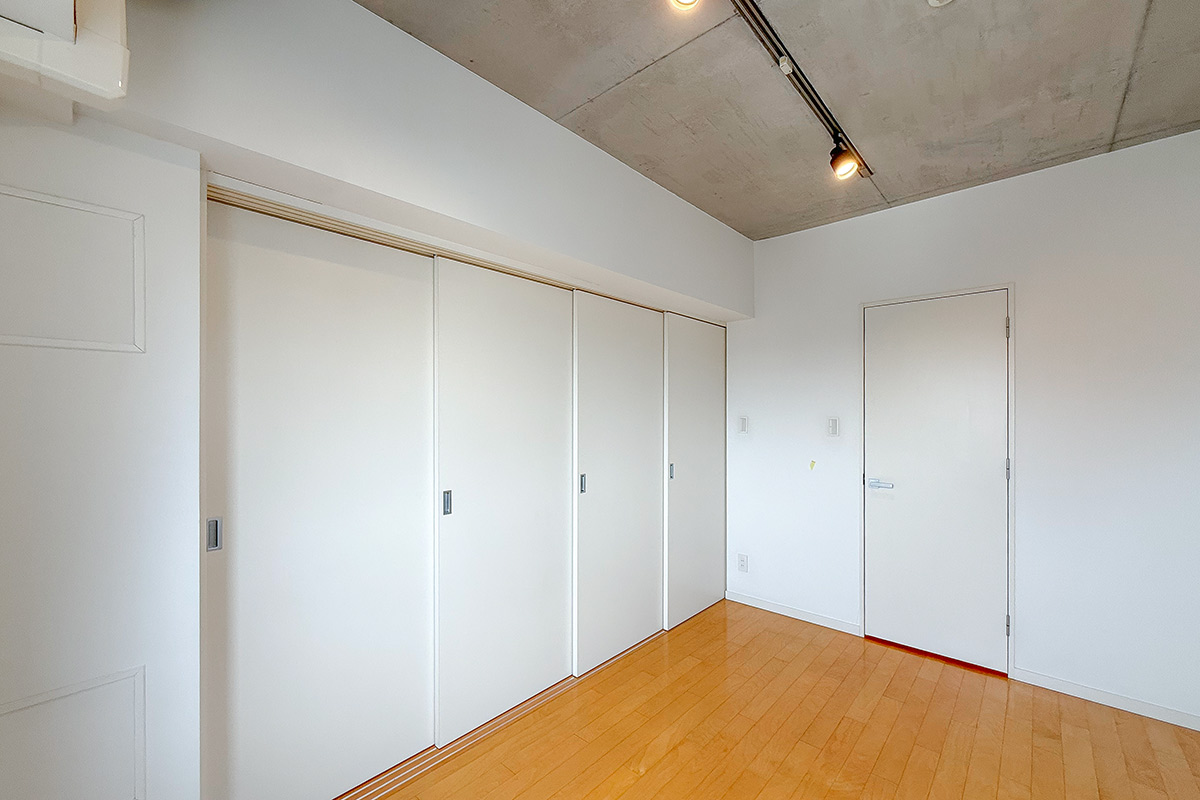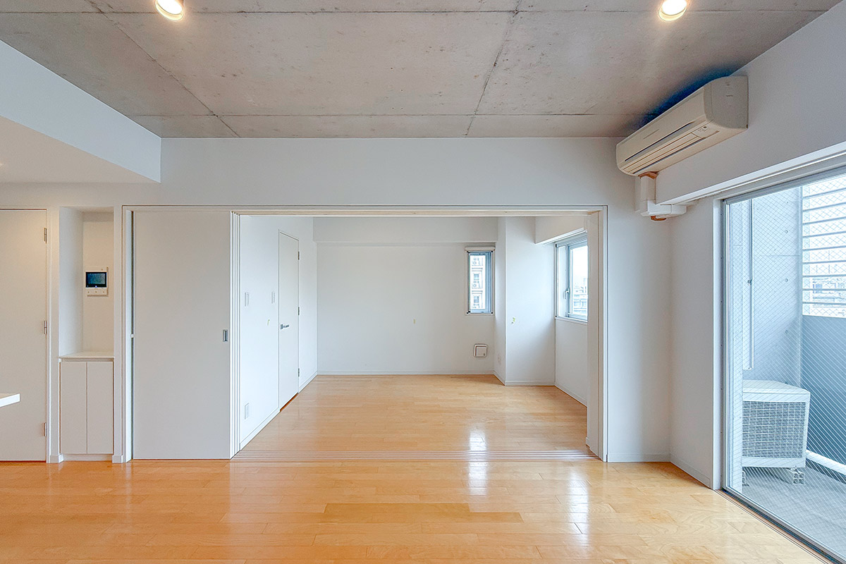 6.4帖の寝室との間はスライドドアなので、全開にすると広いワンルームのように使えて開放感たっぷり◎