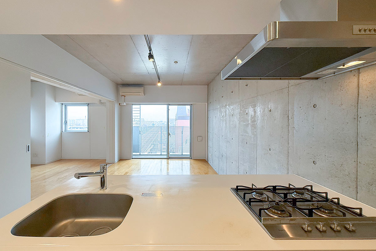 キッチンから見て正面にはバルコニーがあり室内に爽やかな日差しが差し込みます。