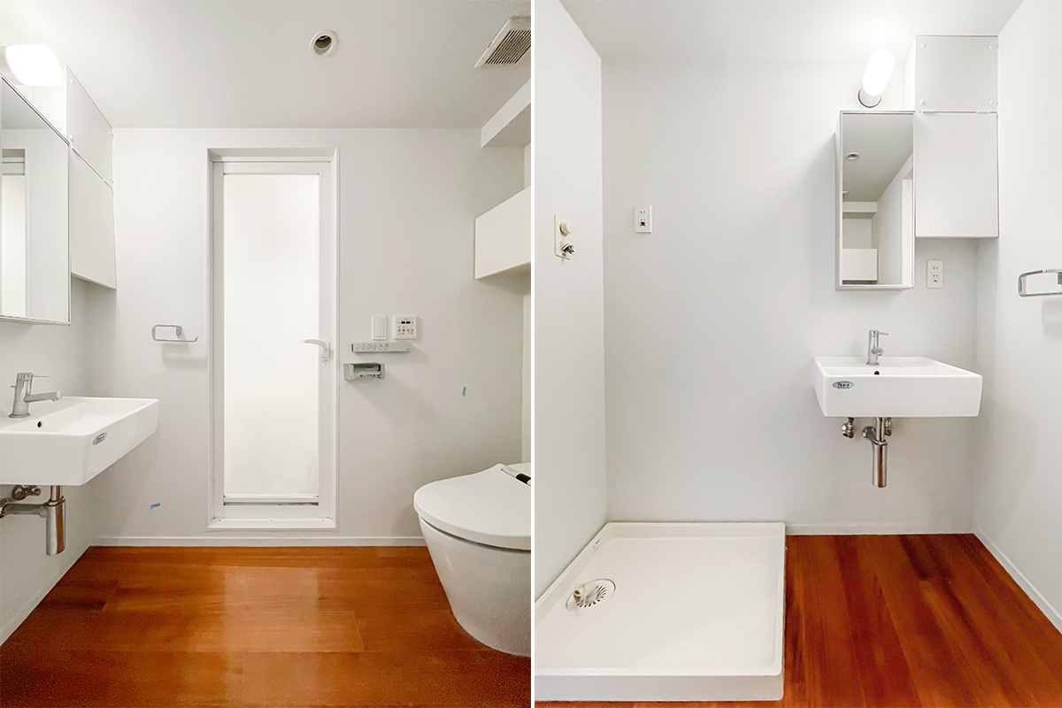 洗面台・トイレは同じ空間にありますが、ホテルライクなデザインでゆったりめ。