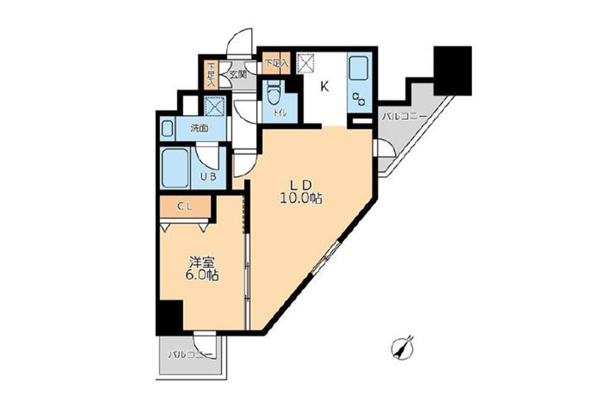 10帖のリビングと6帖の洋室、どちらも小さなバルコニーや窓から都会の街並みを見渡せるロケーション!