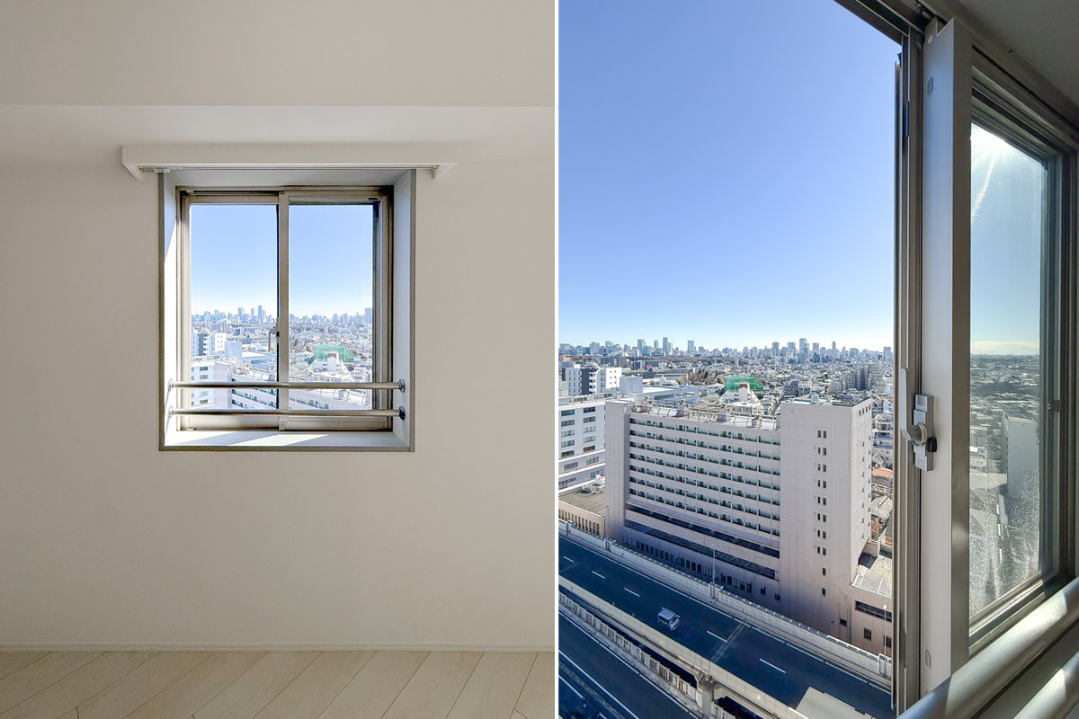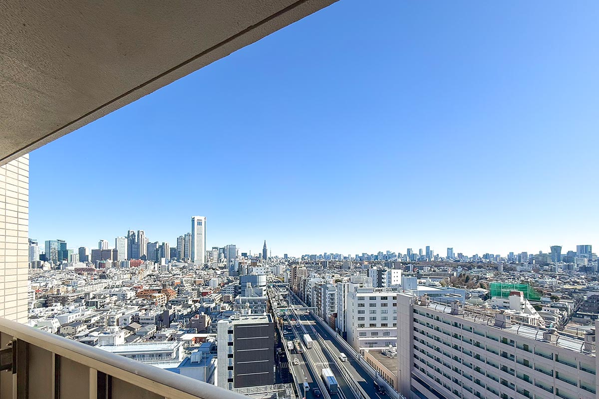 見下ろすと首都高が見えますが、16階の高さなので音の影響は意外と少なく感じました。
