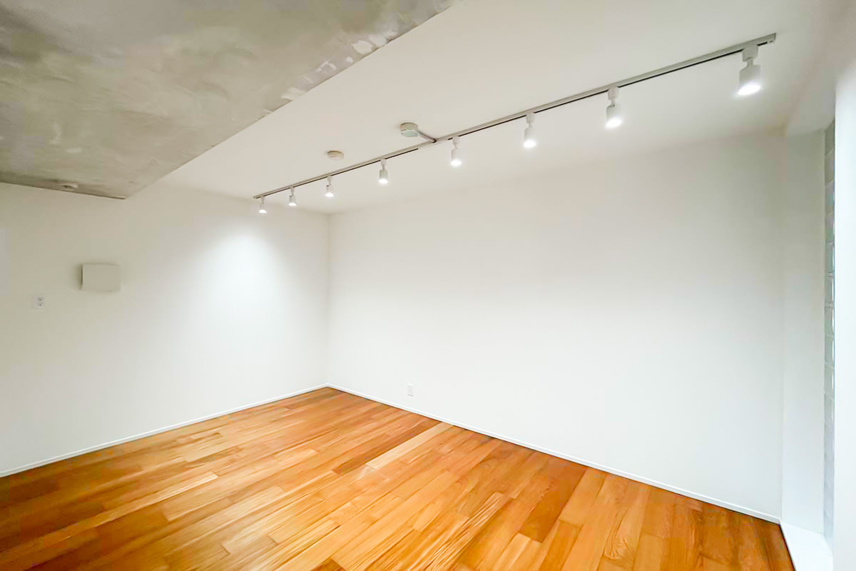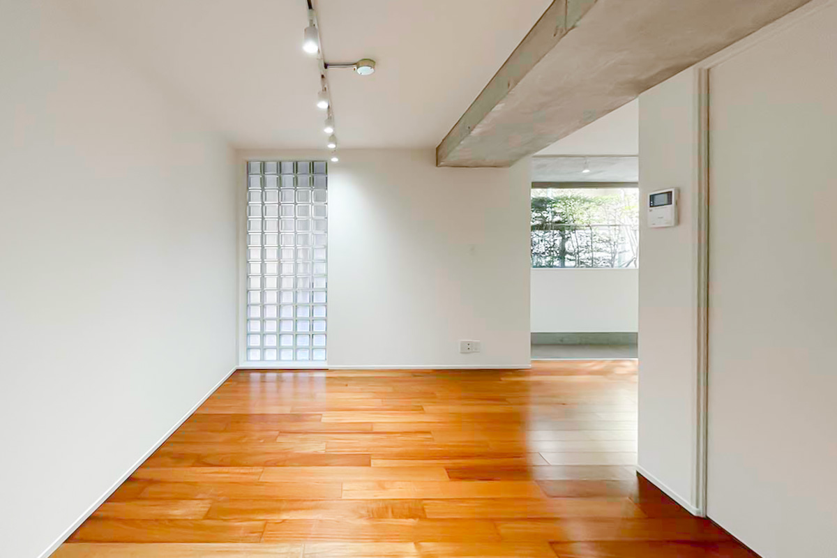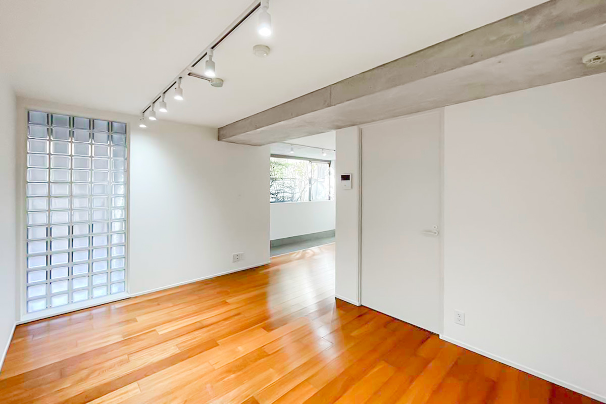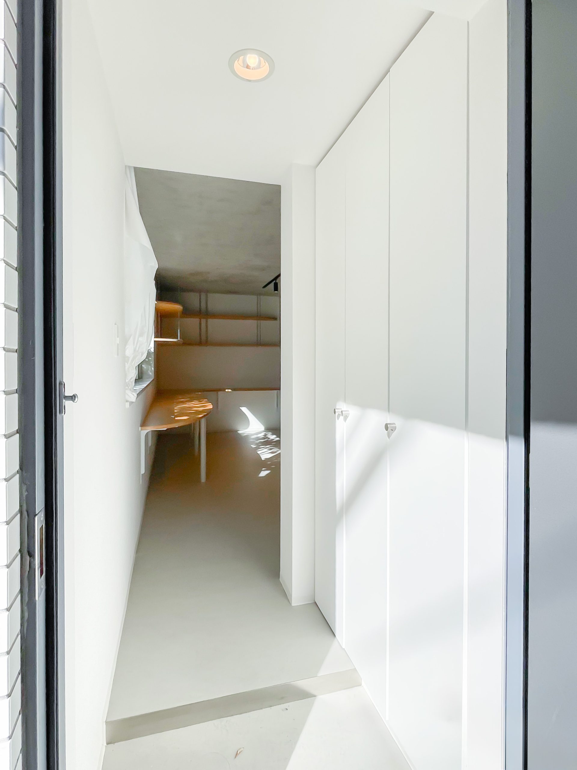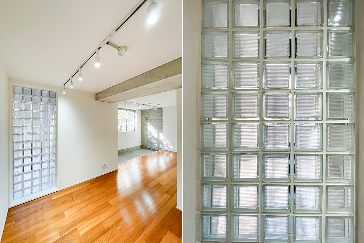 奥の空間はより集中して作業するスペースや寝室として使うのはいかがでしょうか。ガラスブロックで柔らかに採光しています。