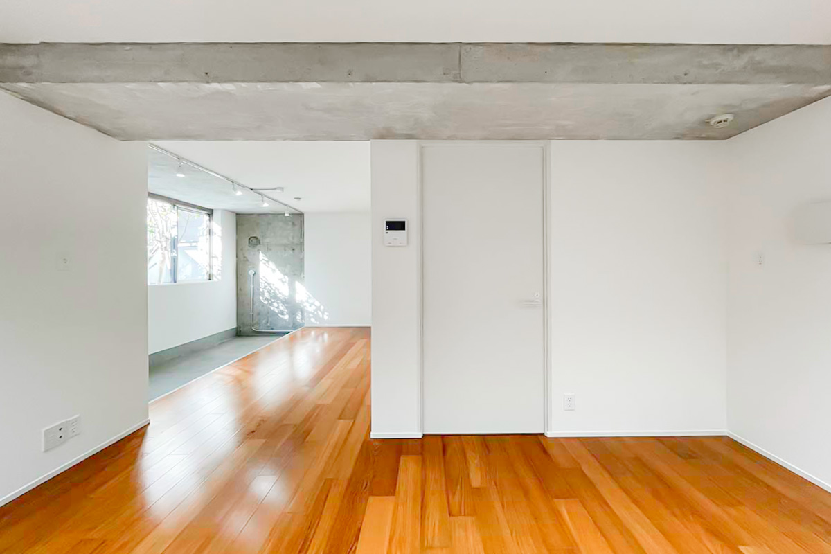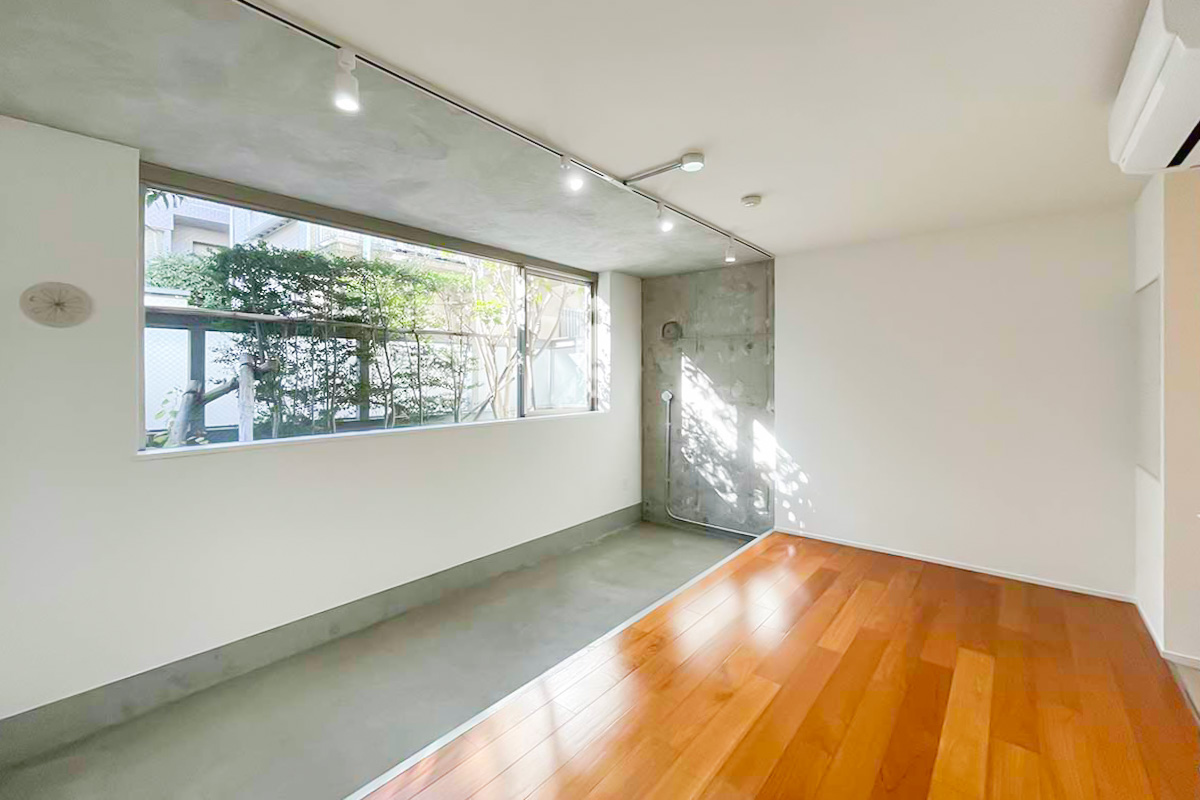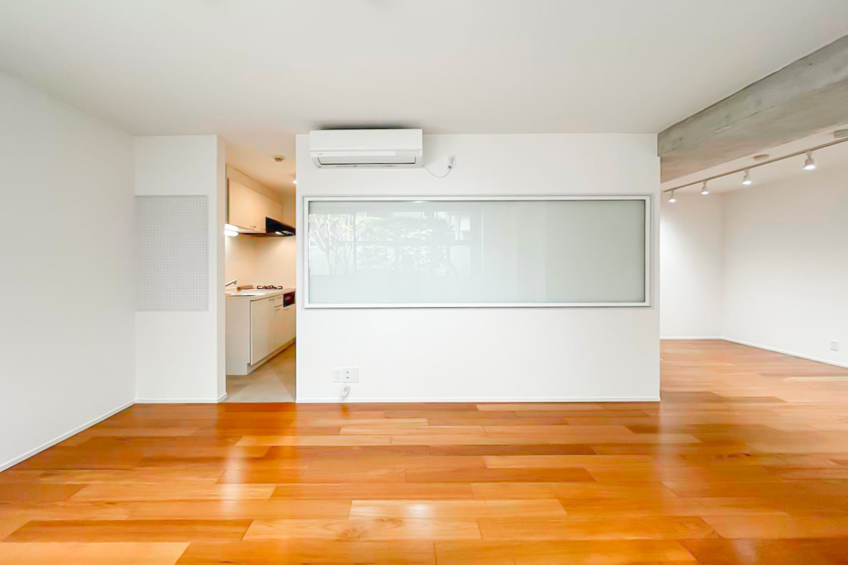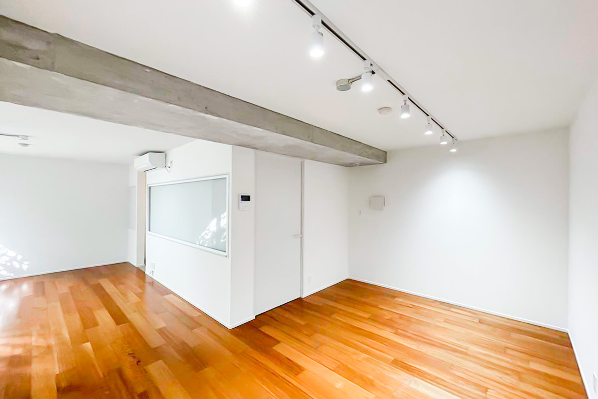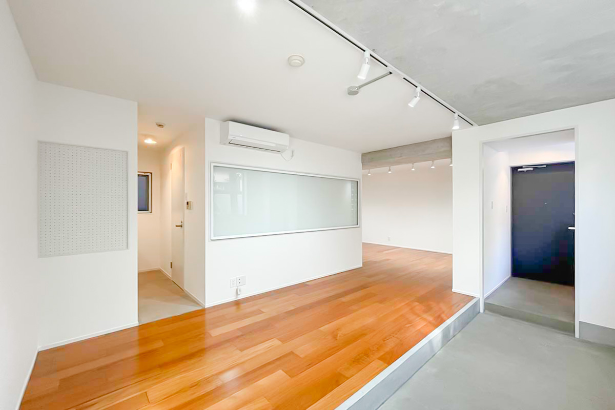 奥の空間はより集中して作業するスペースや寝室として使うのはいかがでしょうか。ガラスブロックで柔らかに採光しています。
