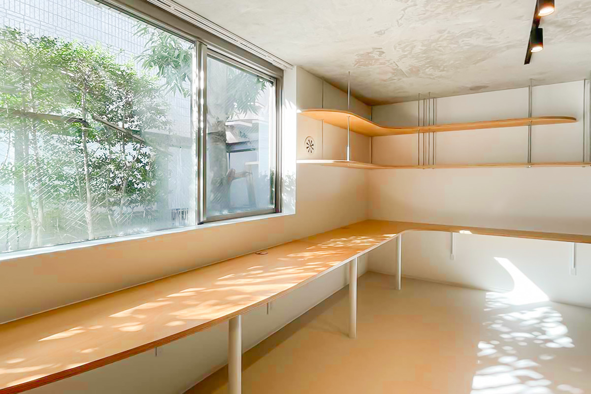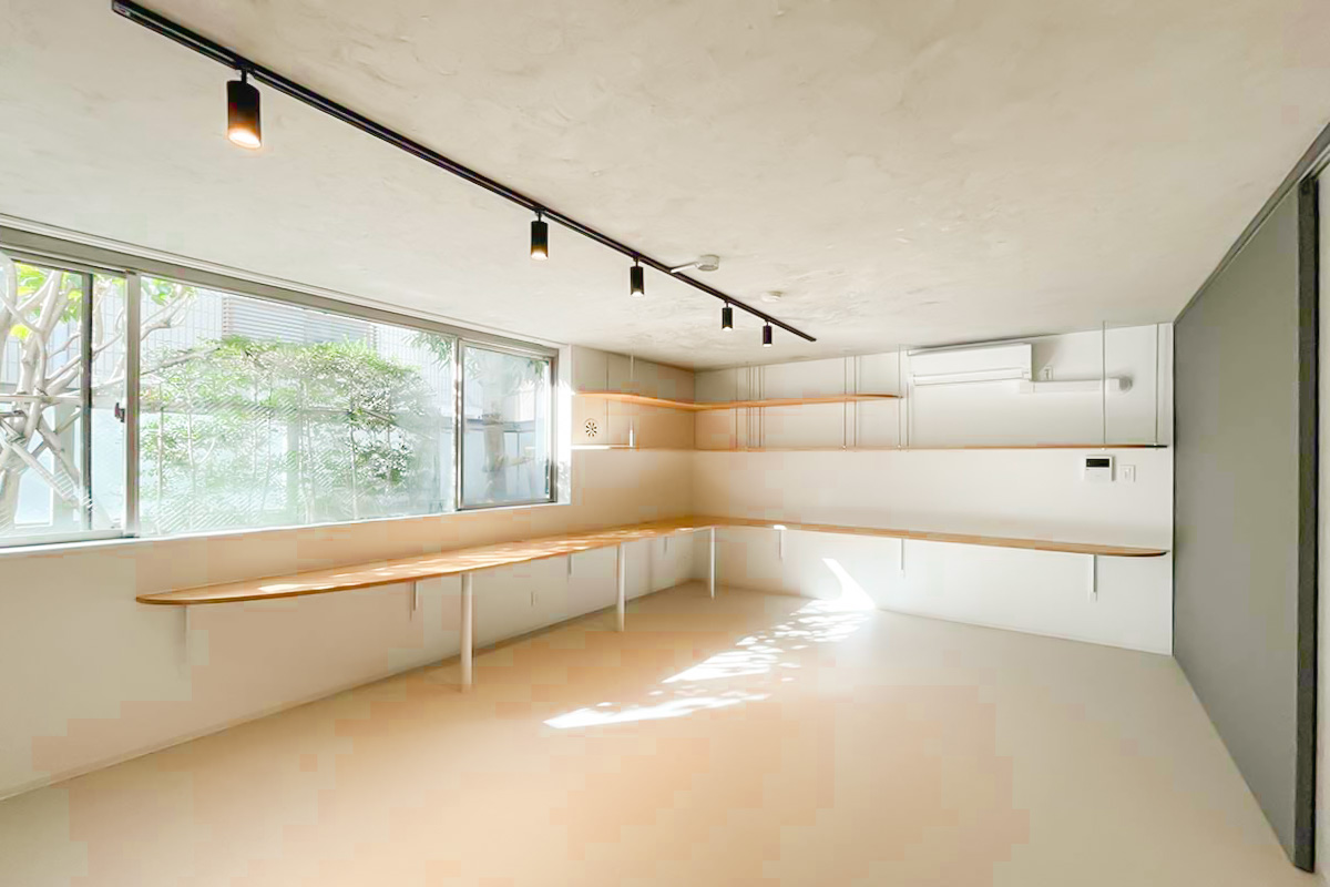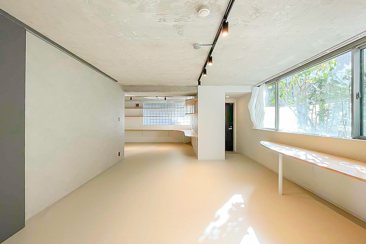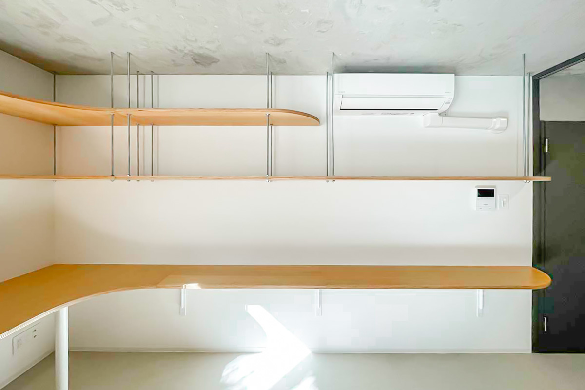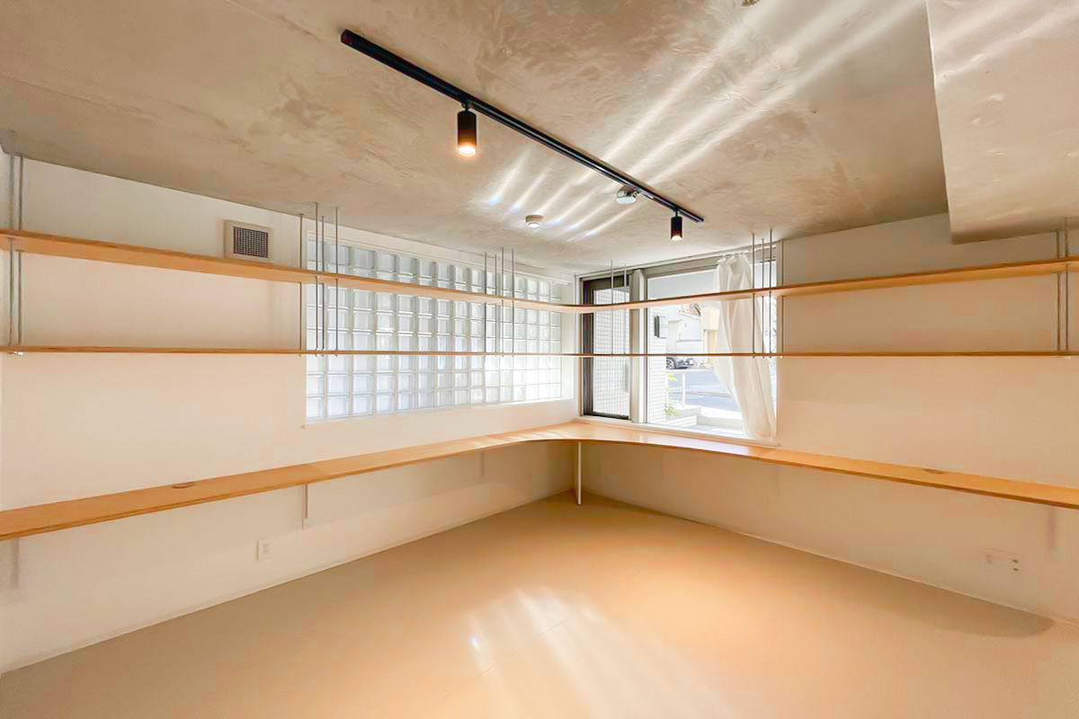 住居なら一角はコレクションを飾る棚にしてみても良いかも。事務所・SOHOなら2~3人で利用して、それぞれ大きな作業カウンターに!使い方の妄想が広がる造りです。