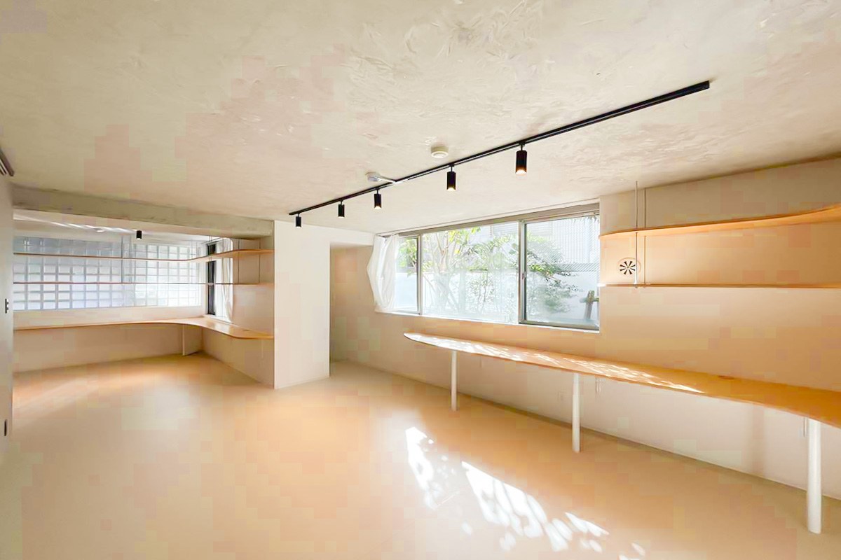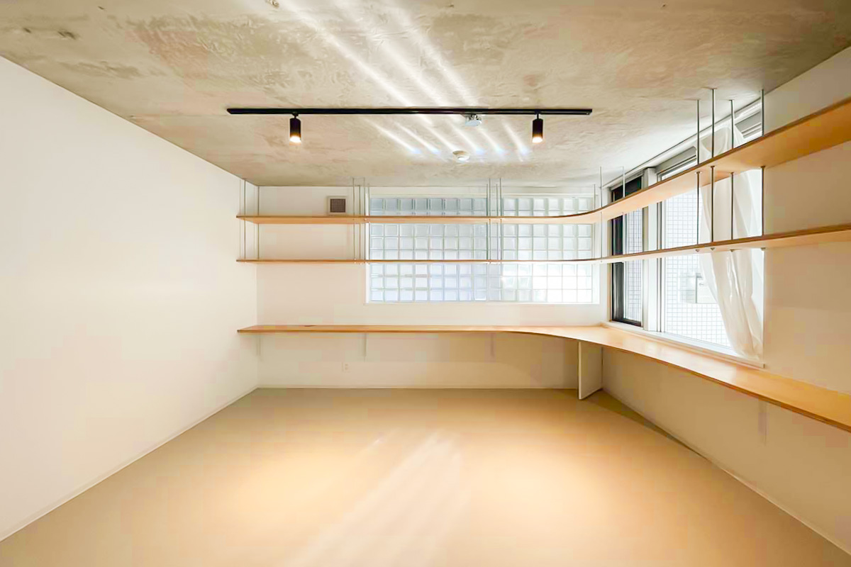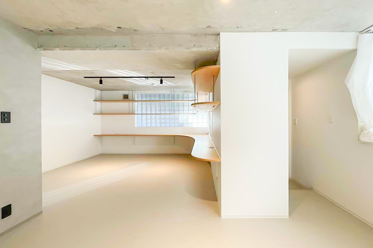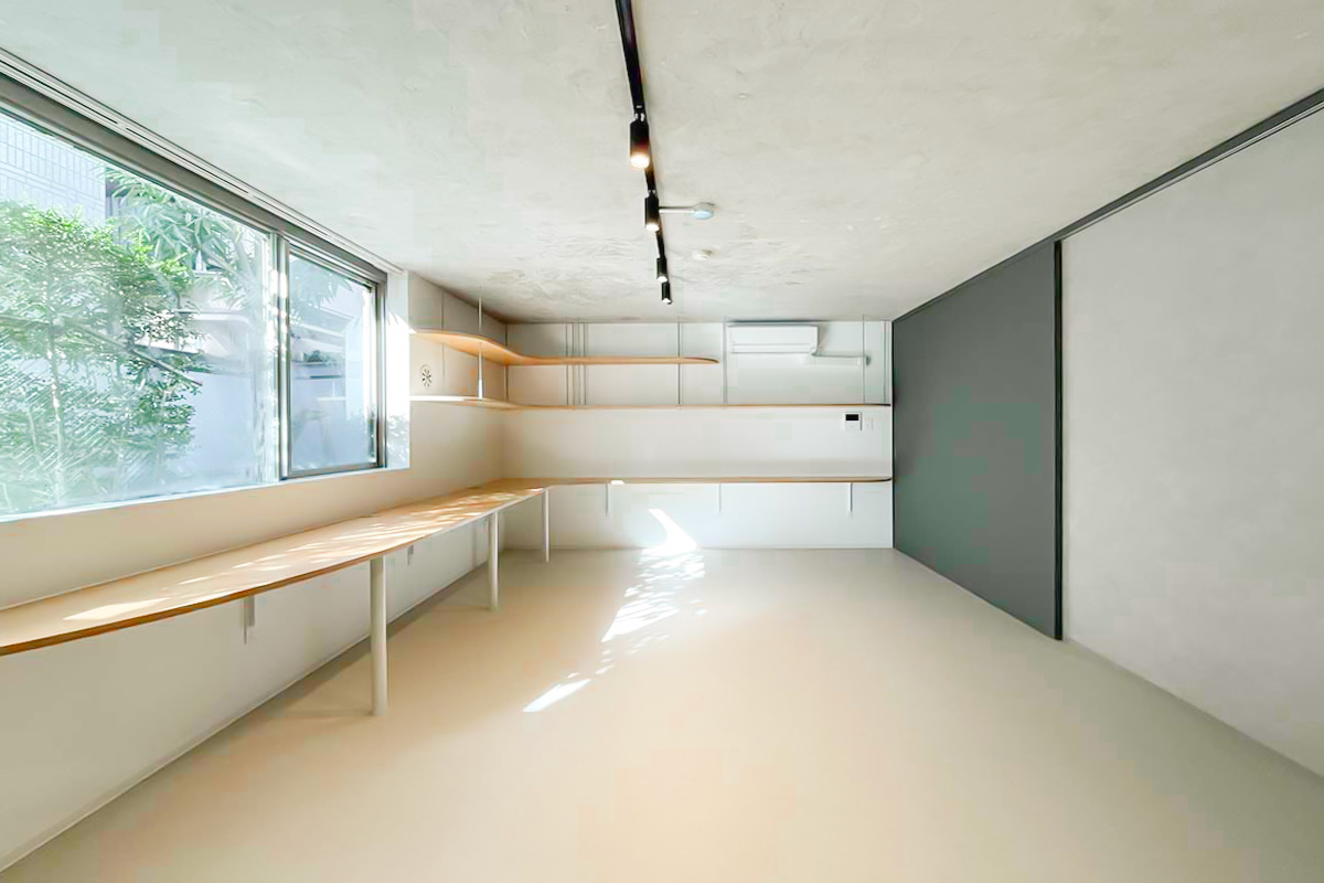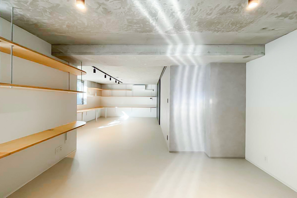 住居なら一角はコレクションを飾る棚にしてみても良いかも。事務所・SOHOなら2~3人で利用して、それぞれ大きな作業カウンターに!使い方の妄想が広がる造りです。