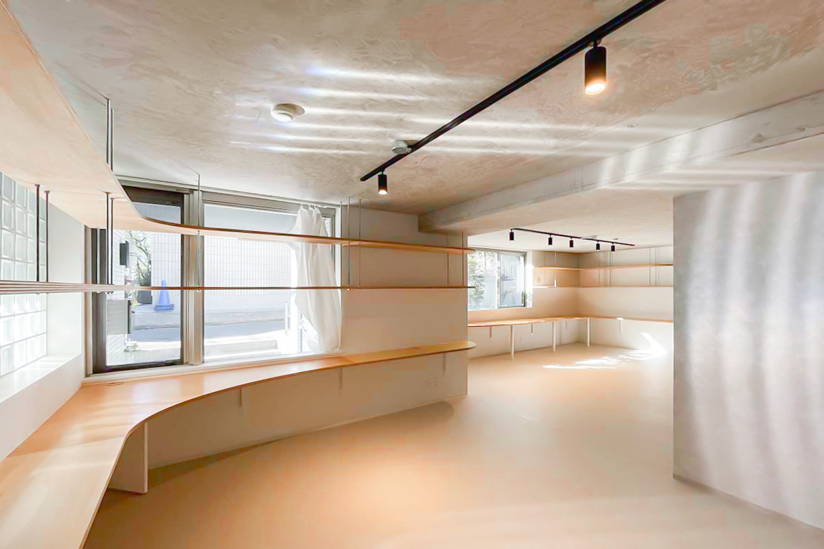 図面の時点で面白いのですが、部屋の辺という辺、角という角にカウンターが設けられ、カウンターも柔らかな曲線の形状になっています。