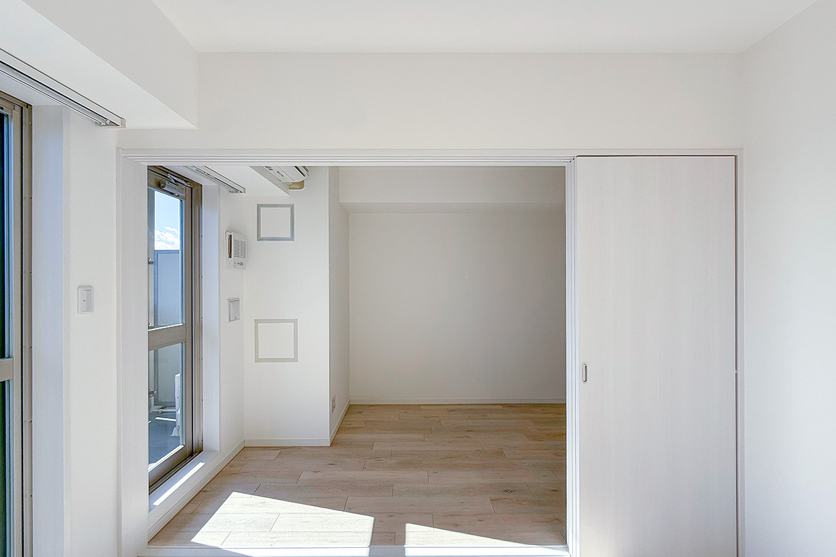 リビングと洋室にまたがるバルコニーは南東向きで明るさもたっぷり◎