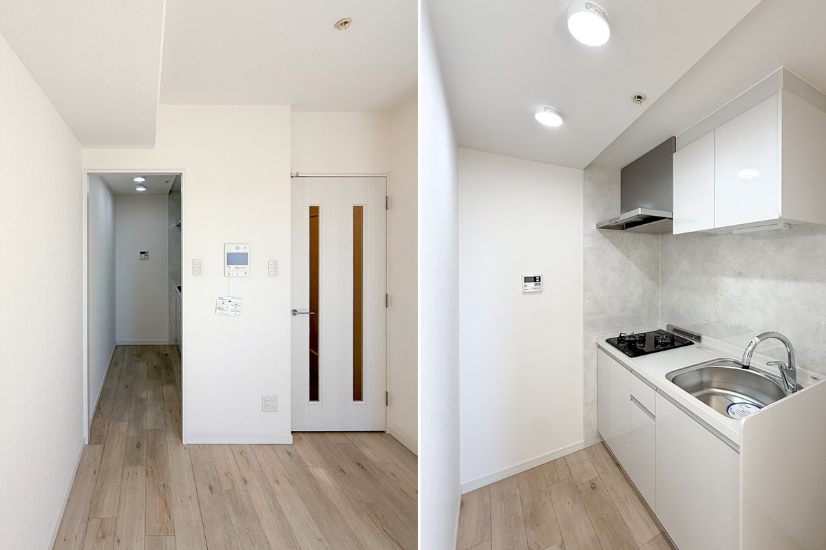 募集中のお部屋は中高層部分の10階、シンプルな1DKタイプ。