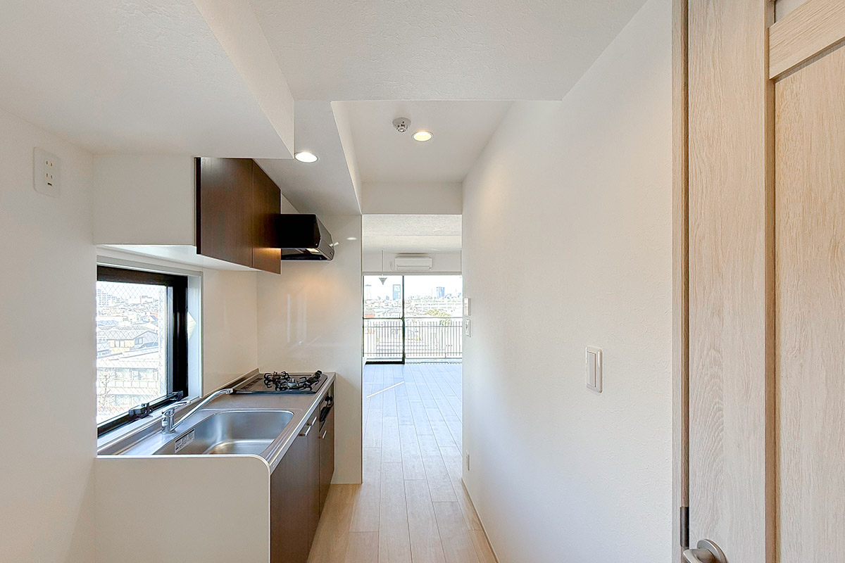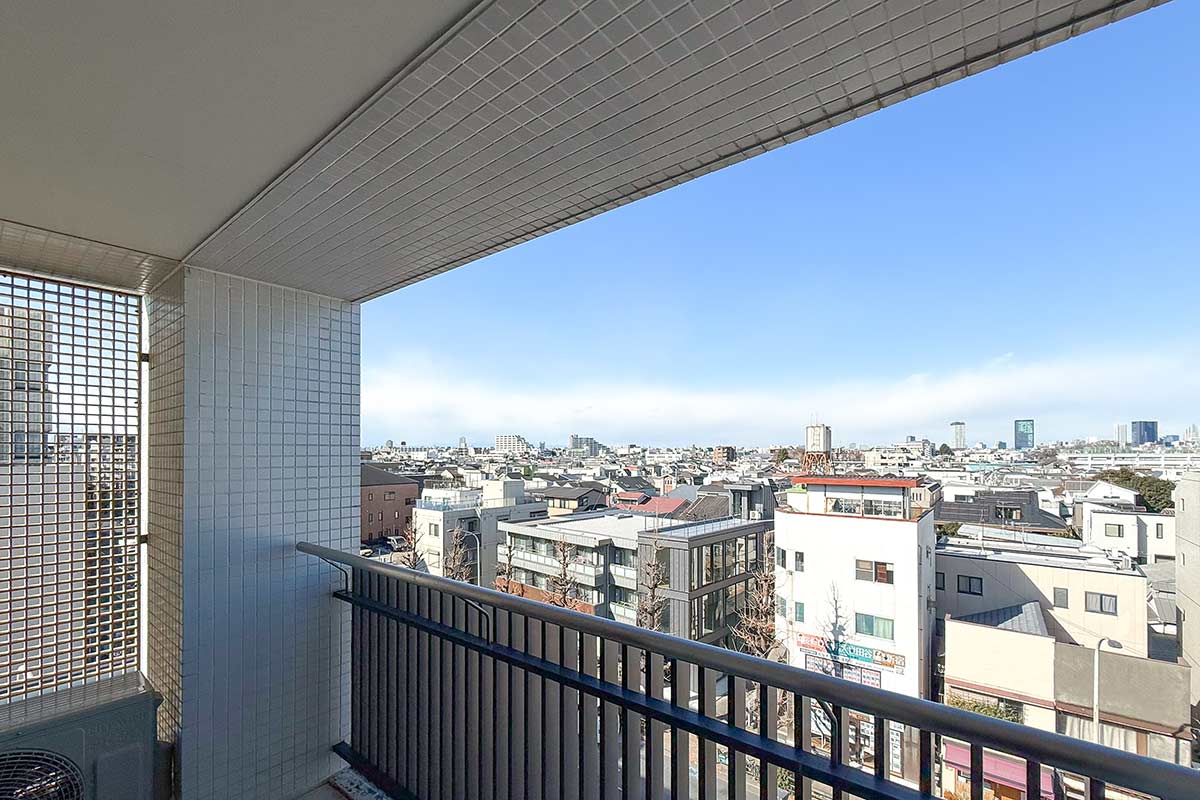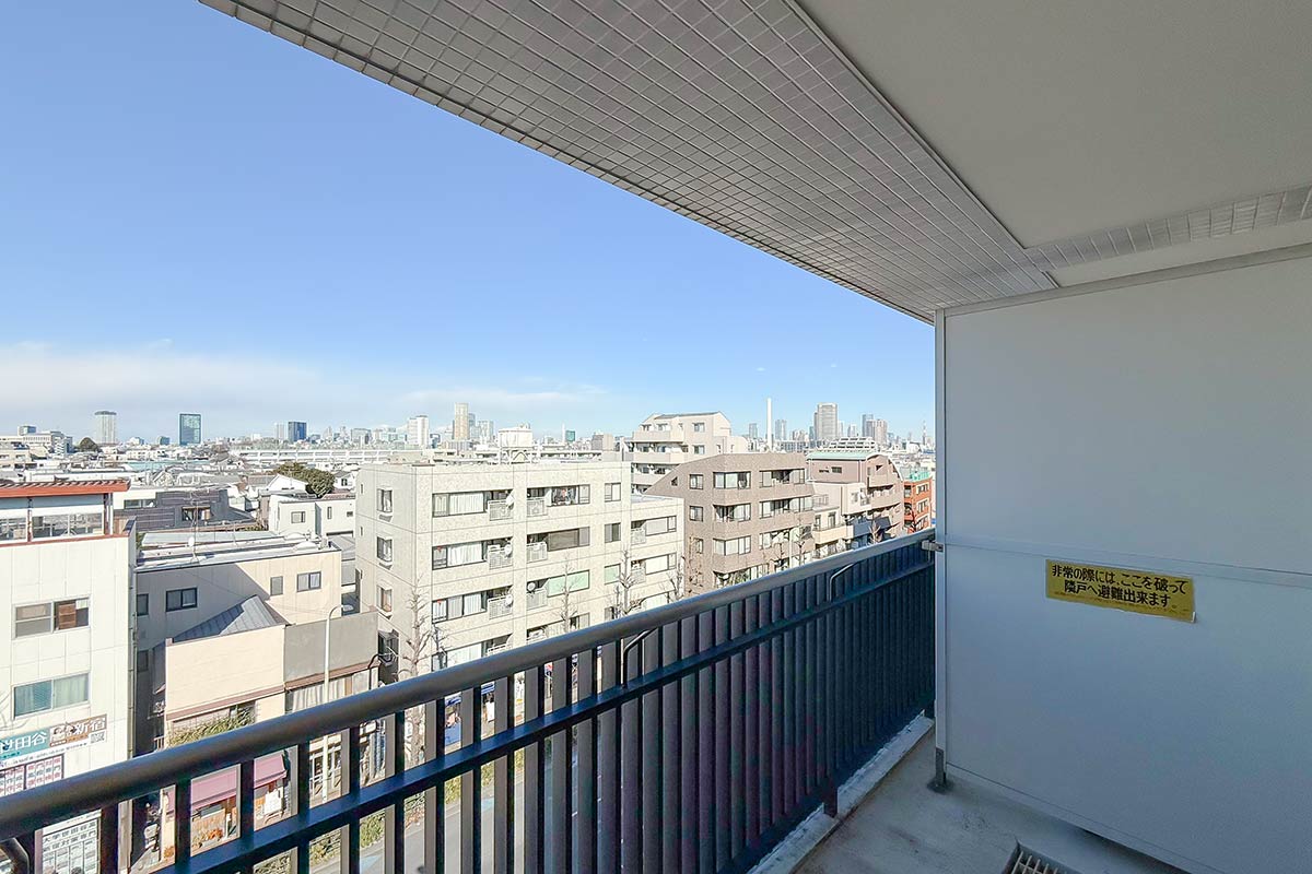バルコーからは視界を遮るものが無く、北向きと思わせないようなすっきりとした青空が広がります。