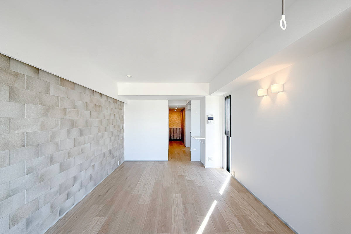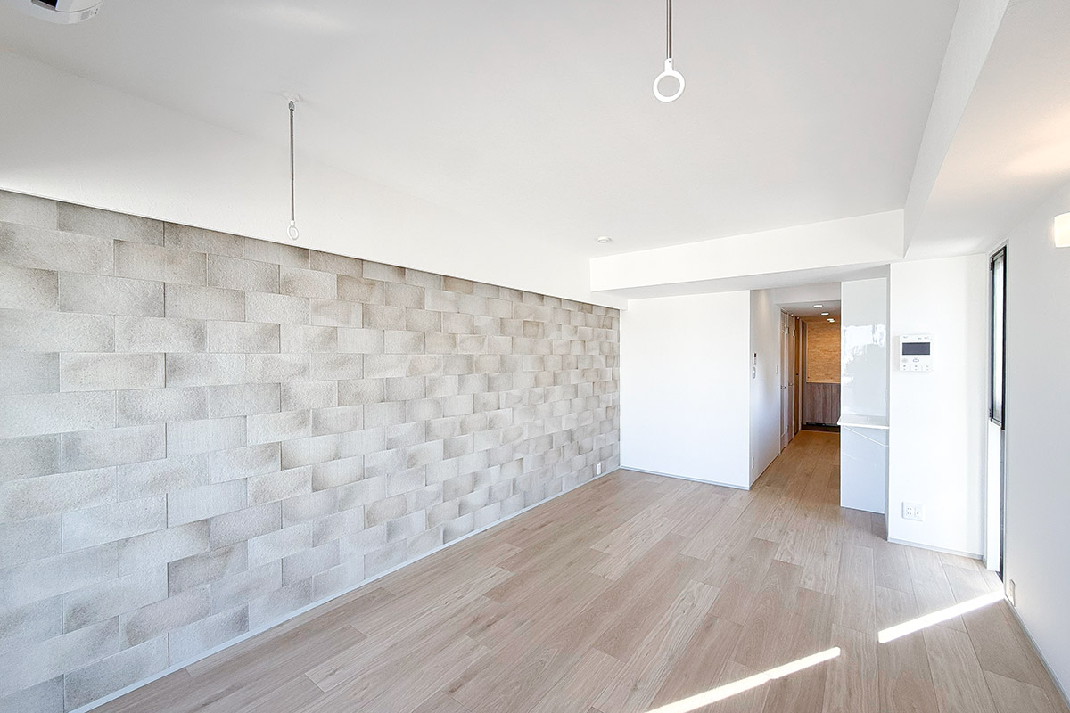 ひとつの面をアクセントウォールにすることで、品のある空間を作り上げてくれます。